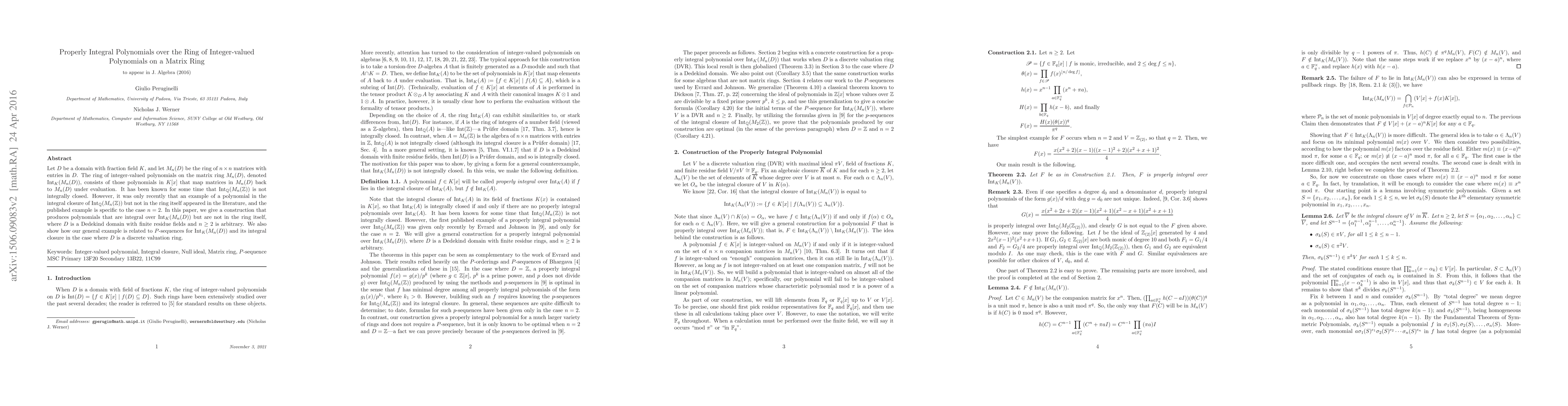 This paper constructs integral polynomials over the ring of integer-valued polynomials on matrix rings $M_n(D)$, where $D$ is a Dedekind domain. It demonstrates that these polynomials are integral over but not contained within the ring itself, extending the known example for $n=2$ to arbitrary $n$.