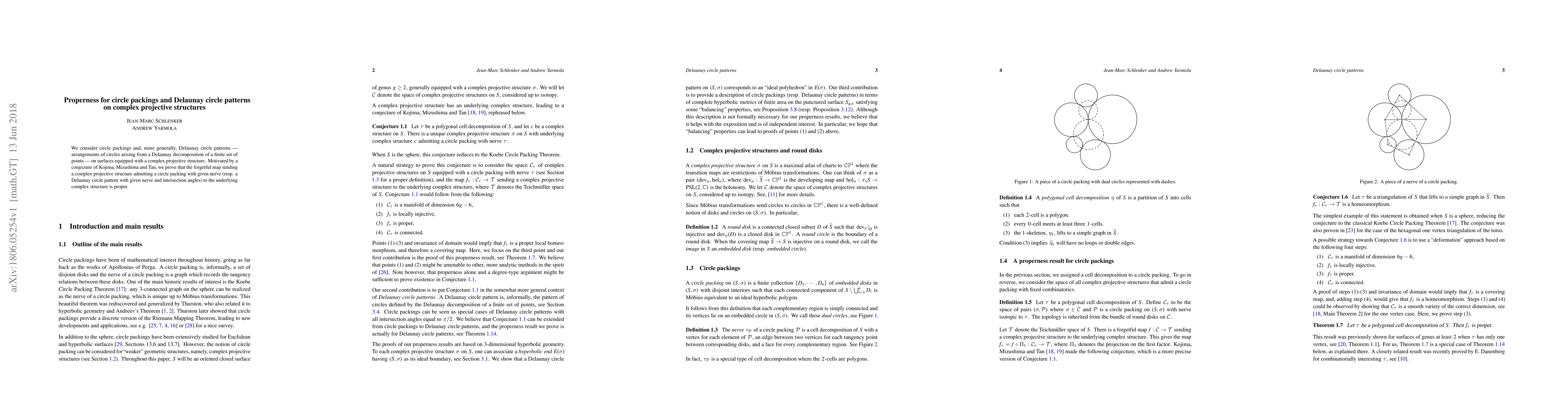 This paper proves that the forgetful map linking complex projective structures with circle packings or Delaunay circle patterns, as conjectured by Kojima, Mizushima, and Tan, is proper. This result supports the connection between these circle arrangements and the underlying complex structure.