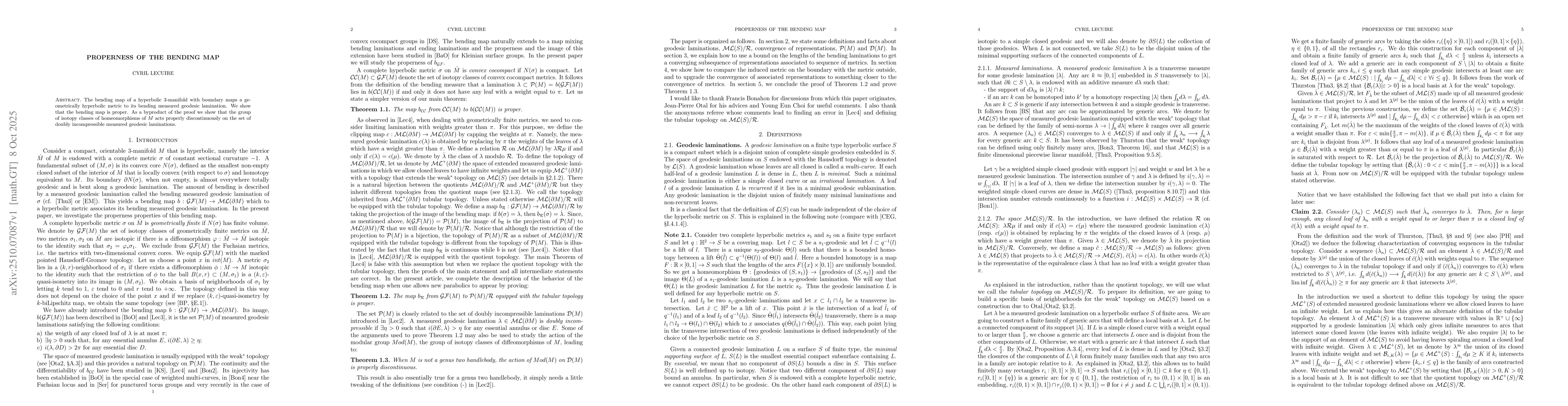 This work presents the first rigorous proof of the continuity of the bending map under geometric convergence, combined with a characterization of the mapping class group action on measured laminations, offering new perspectives on the geometry of 3-manifolds.