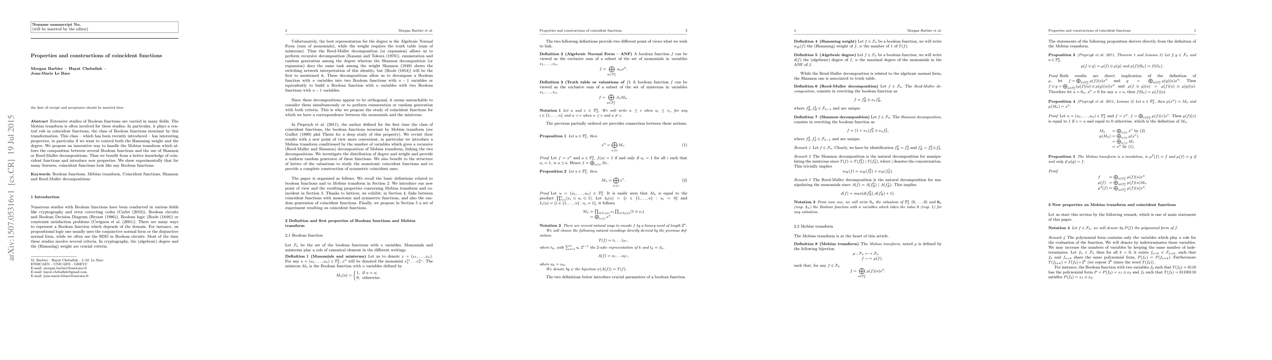 Extensive studies of Boolean functions are carried in many fields. The Mobius transform is often involved for these studies. In particular, it plays a central role in coincident functions, the class of Boolean functions invariant by this transformation. This class -- which has been recently introduced -- has interesting properties, in particular if we want to control both the Hamming weight and the degree. We propose an innovative way to handle the Mobius transform which allows the composition between several Boolean functions and the use of Shannon or Reed-Muller decompositions. Thus we benefit from a better knowledge of coin-cident functions and introduce new properties. We show experimentally that for many features, coincident functions look like any Boolean functions.