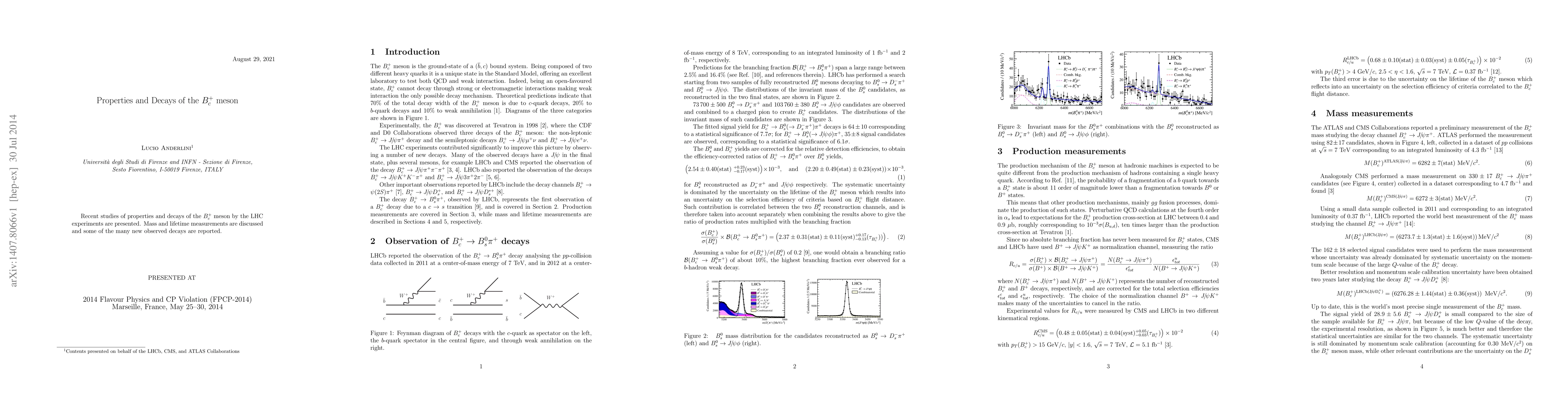 Recent studies of properties and decays of the $B_c^+$ meson by the LHC experiments are presented. Mass and lifetime measurements are discussed and some of the many new observed decays are reported.