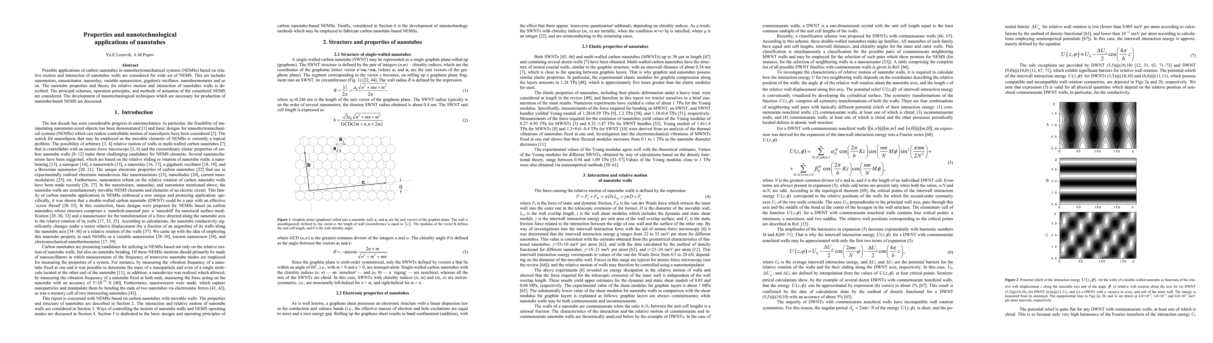 Research explores carbon nanotubes for various nanoelectromechanical systems (NEMS), including motors, actuators, and thermometers, highlighting their properties and potential applications.