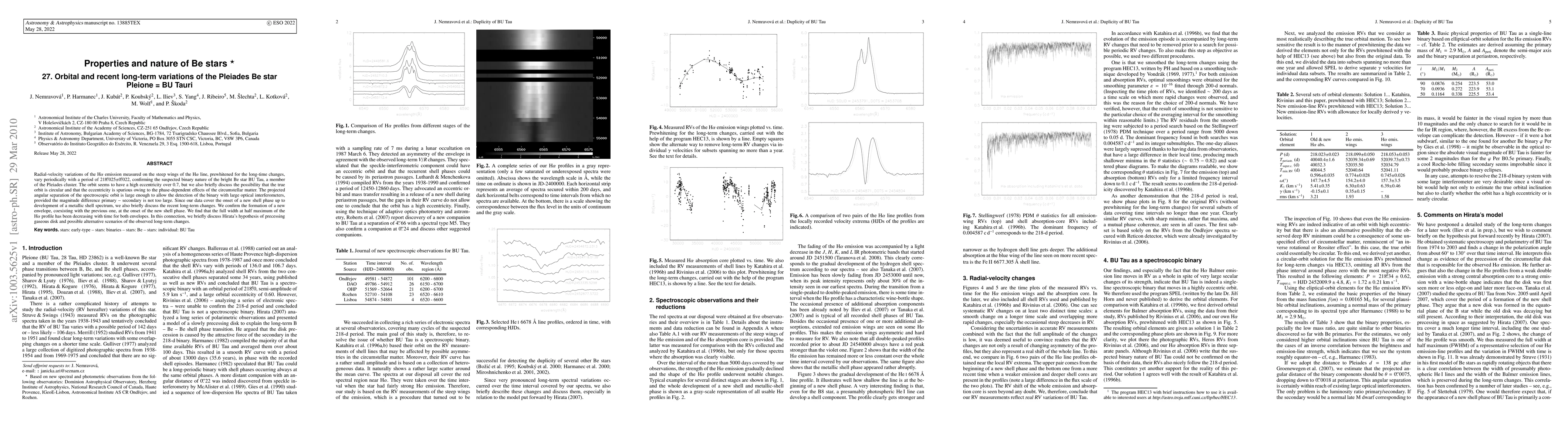 Radial-velocity variations of the H-alpha emission measured on the steep wings of the H-alpha line, prewhitened for the long-time changes, vary periodically with a period of (218.025 +/- 0.022)d, confirming the suspected binary nature of the bright Be star Pleione, a member of the Pleiades cluster. The orbit seems to have a high eccentricity over 0.7, but we also briefly discuss the possibility that the true orbit is circular and that the eccentricity is spurious owing to the phase-dependent effects of the circumstellar matter. The projected angular separation of the spectroscopic orbit is large enough to allow the detection of the binary with large optical interferometers, provided the magnitude difference primary - secondary is not too large. Since our data cover the onset of a new shell phase up to development of a metallic shell spectrum, we also briefly discuss the recent long-term changes. We confirm the formation of a new envelope, coexisting with the previous one, at the onset of the new shell phase. We find that the full width at half maximum of the H-alpha profile has been decreasing with time for both envelopes. In this connection, we briefly discuss Hirata's hypothesis of precessing gaseous disk and possible alternative scenarios of the observed long-term changes.