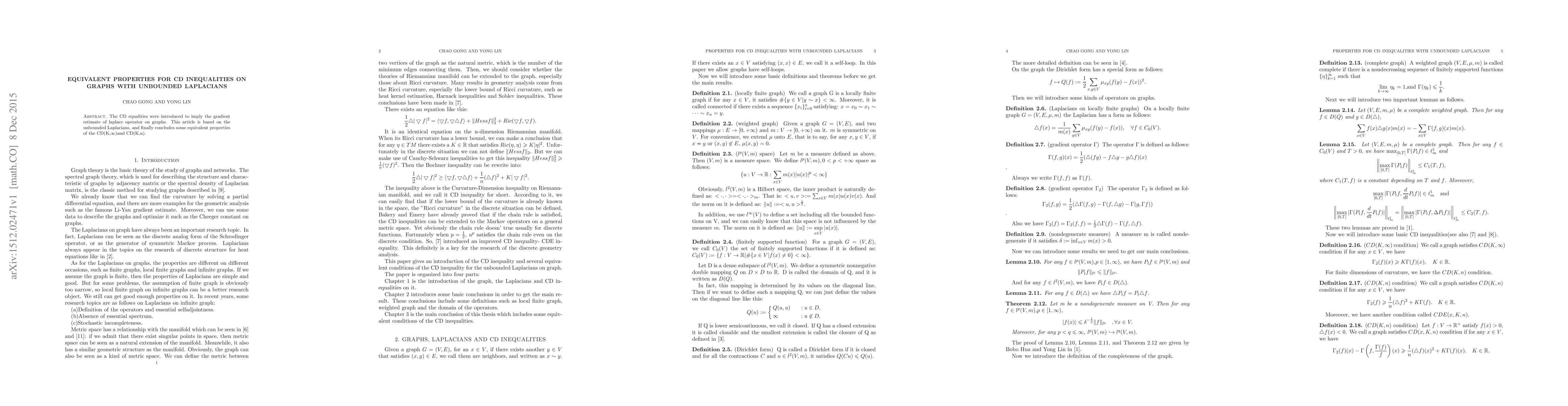 The CD equalities were introduced to imply the gradient estimate of laplace operator on graphs. This article is based on the unbounded Laplacians, and finally concludes some equivalent properties of the CD(K,$\infty$)and CD(K,n).