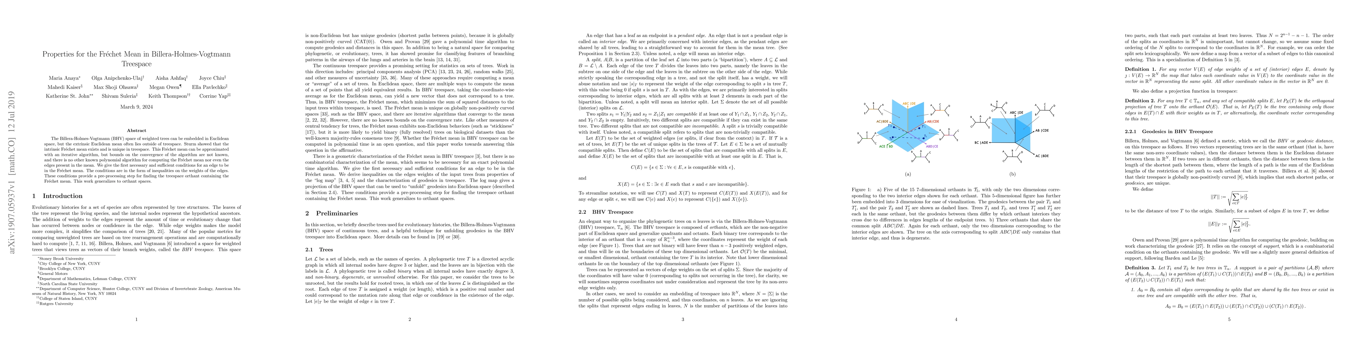The Billera-Holmes-Vogtmann (BHV) space of weighted trees can be embedded in Euclidean space, but the extrinsic Euclidean mean often lies outside of treespace. Sturm showed that the intrinsic Frechet mean exists and is unique in treespace. This Frechet mean can be approximated with an iterative algorithm, but bounds on the convergence of the algorithm are not known, and there is no other known polynomial algorithm for computing the Frechet mean nor even the edges present in the mean. We give the first necessary and sufficient conditions for an edge to be in the Frechet mean. The conditions are in the form of inequalities on the weights of the edges. These conditions provide a pre-processing step for finding the treespace orthant containing the Frechet mean. This work generalizes to orthant spaces.