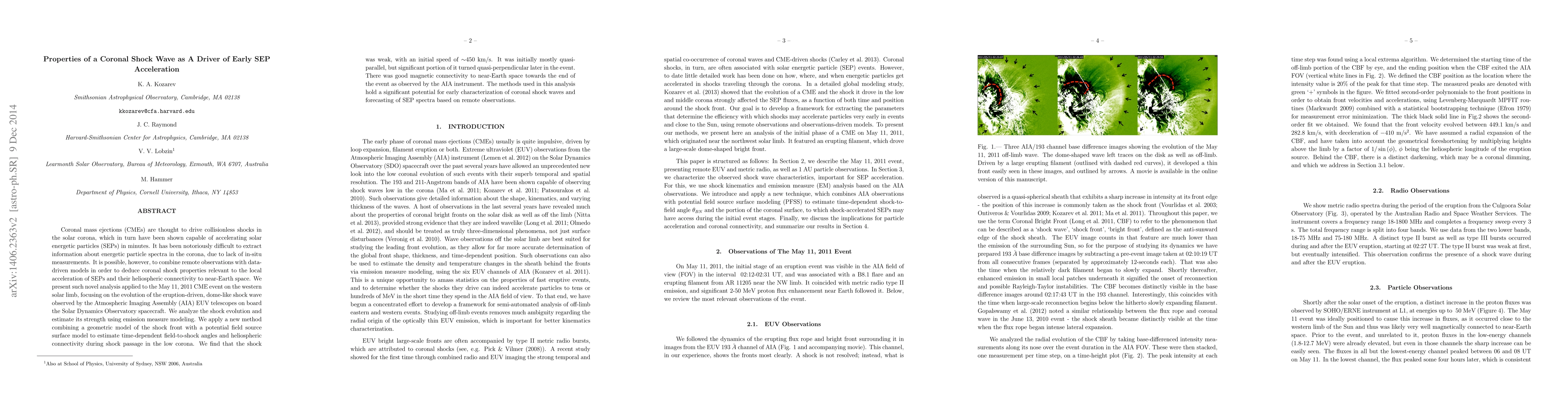 This paper investigates the properties of a coronal shock wave driven by a CME on May 11, 2011, using remote observations and data-driven models to deduce its role in early SEP acceleration. The analysis reveals a weak, initially quasi-parallel shock that later became quasi-perpendicular, with strong magnetic connectivity to near-Earth space towards the end of the event.