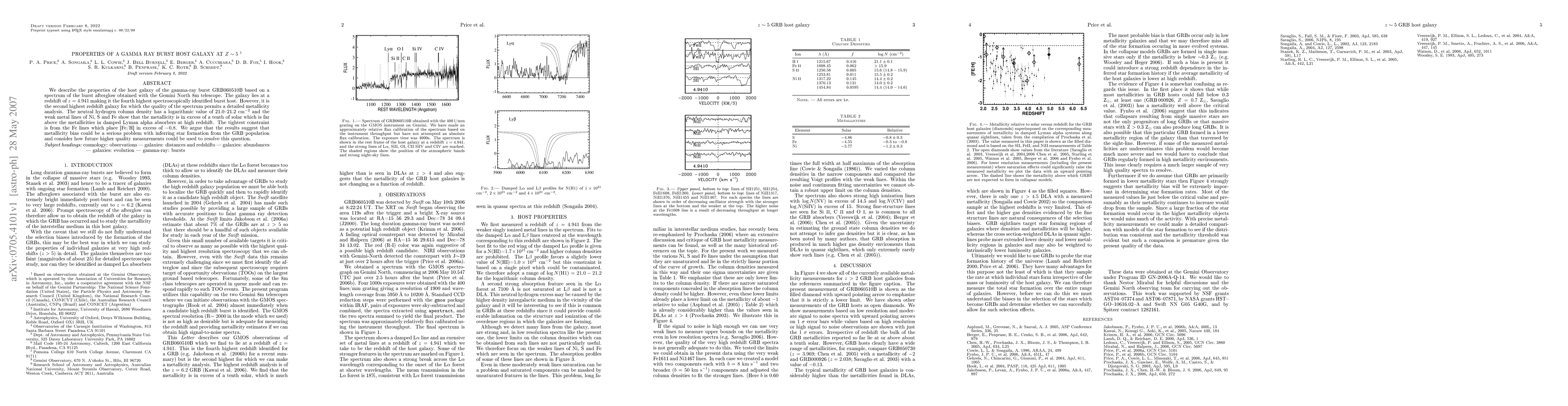 The paper presents a detailed metallicity analysis of a high-redshift GRB host galaxy using a spectrum of the burst afterglow.