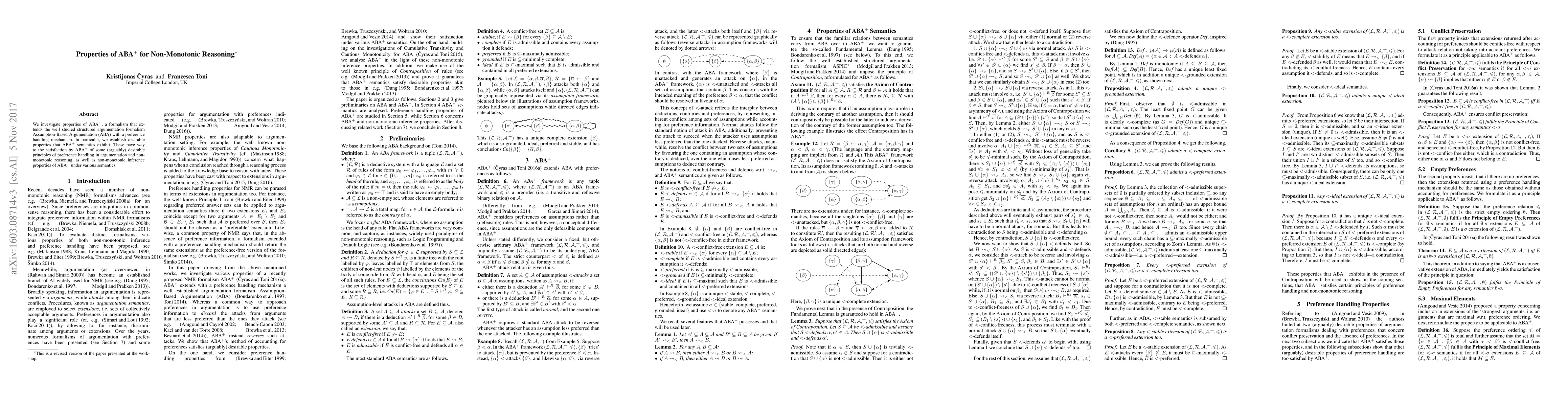 This paper explores the properties of ABA+, an extension of Assumption-Based Argumentation (ABA) that incorporates preference handling. It establishes desirable properties of ABA+ semantics, demonstrating its adherence to principles of preference handling and non-monotonic reasoning.
