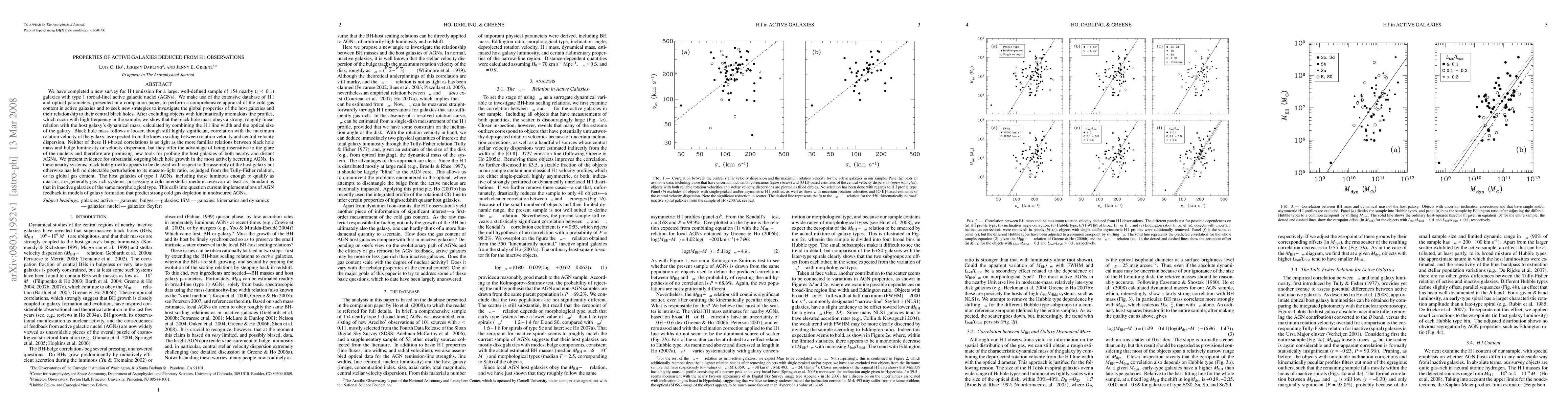 This study investigates the cold gas content in 154 nearby active galaxies using H I observations, revealing a linear relation between black hole mass and host galaxy's dynamical mass. The findings suggest ongoing black hole growth in active galaxies, with no significant perturbation to their mass-to-light ratio or gas content, challenging models predicting strong gas depletion in unobscured AGNs.