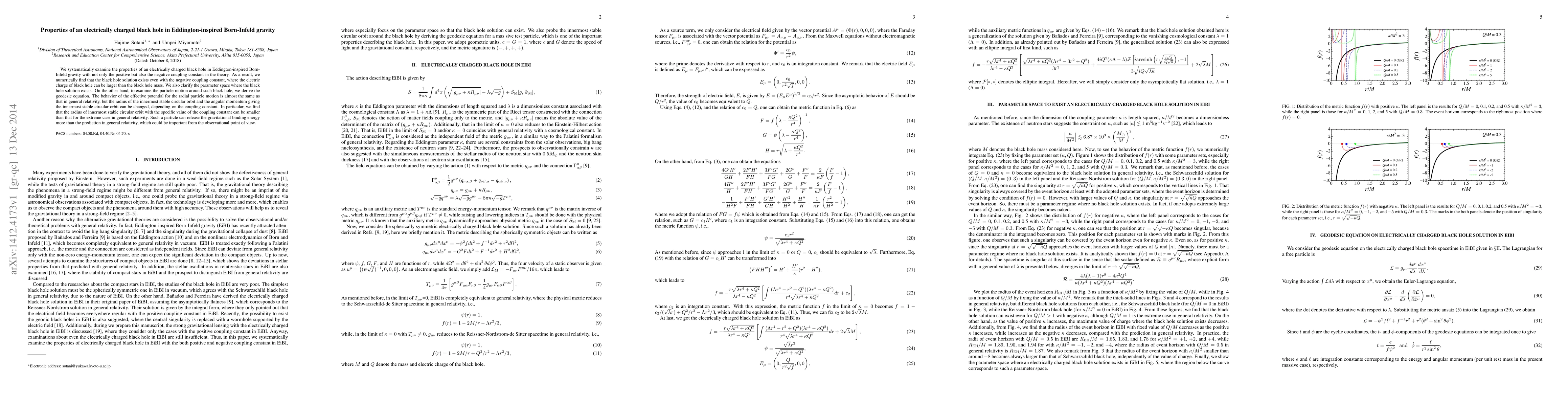 This paper investigates electrically charged black holes in Eddington-inspired Born-Infeld gravity, discovering that solutions exist even with a negative coupling constant, potentially allowing for larger electric charge than mass. It also examines particle motion around these black holes, finding altered innermost stable orbits and higher gravitational binding energy release compared to general relativity.