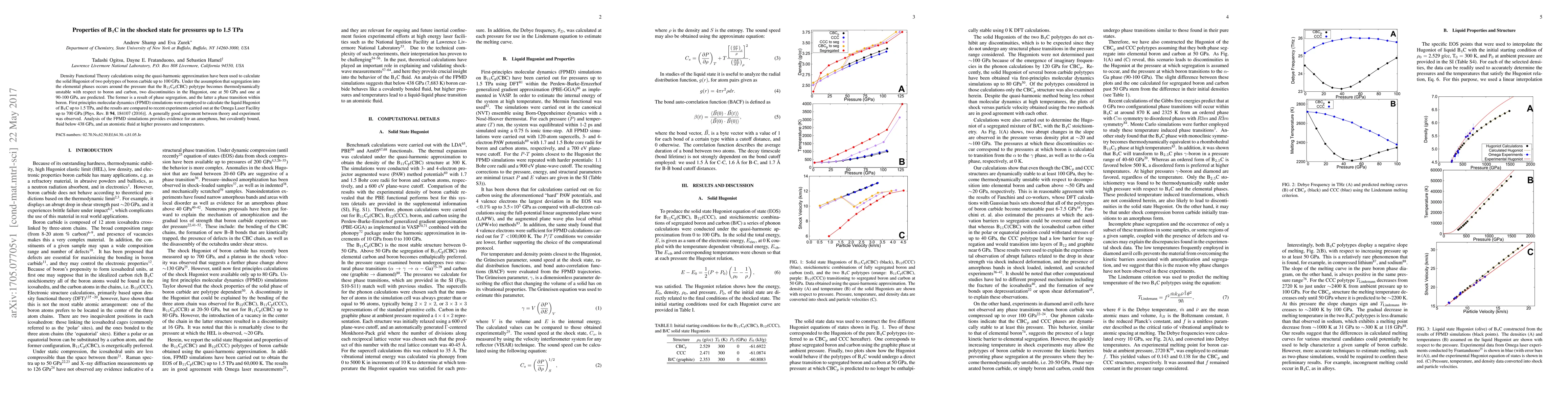 Researchers used density functional theory and molecular dynamics to study boron carbide under high pressure, predicting two discontinuities in its shockwave behavior and an amorphous fluid state at high temperatures.