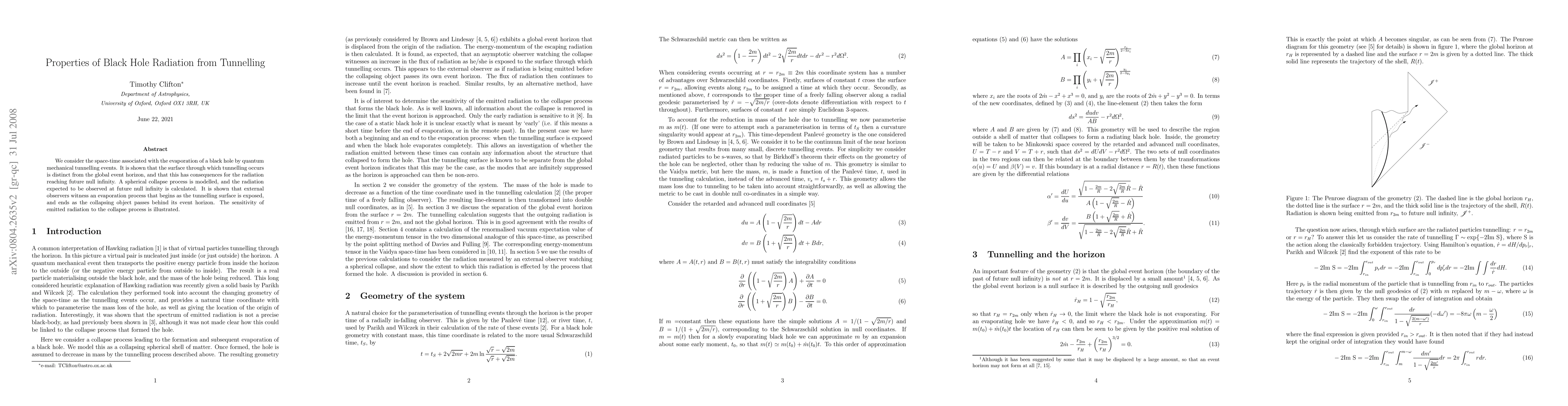We consider the space-time associated with the evaporation of a black hole by quantum mechanical tunnelling events. It is shown that the surface through which tunnelling occurs is distinct from the global event horizon, and that this has consequences for the radiation reaching future null infinity. A spherical collapse process is modelled, and the radiation expected to be observed at future null infinity is calculated. It is shown that external observers witness an evaporation process that begins as the tunnelling surface is exposed, and ends as the collapsing object passes behind its event horizon. The sensitivity of emitted radiation to the collapse process is illustrated.