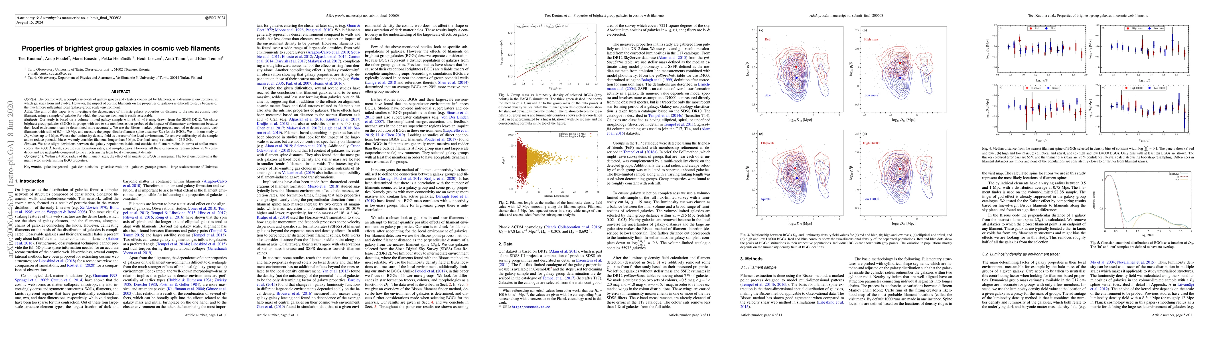 This study investigates the influence of cosmic web filaments on brightest group galaxies (BGGs) using a sample from SDSS DR12, finding that while there are slight differences in properties like stellar mass and morphology between galaxies inside and outside filament radii, these differences are minor compared to the effects of the local environment.