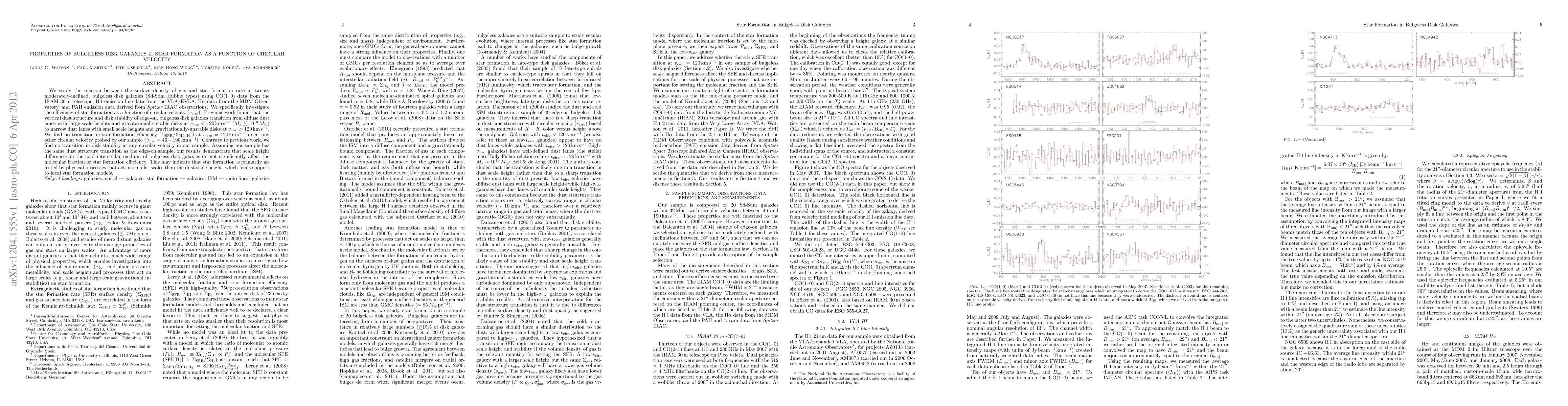 This study investigates the star formation efficiency in twenty bulgeless disk galaxies (Sd-Sdm types) using various observational data. Contrary to previous findings, it finds no transition in star formation efficiency or disk stability at a circular velocity of 120 km/s, suggesting that local processes, not large-scale dust structure, primarily influence star formation.