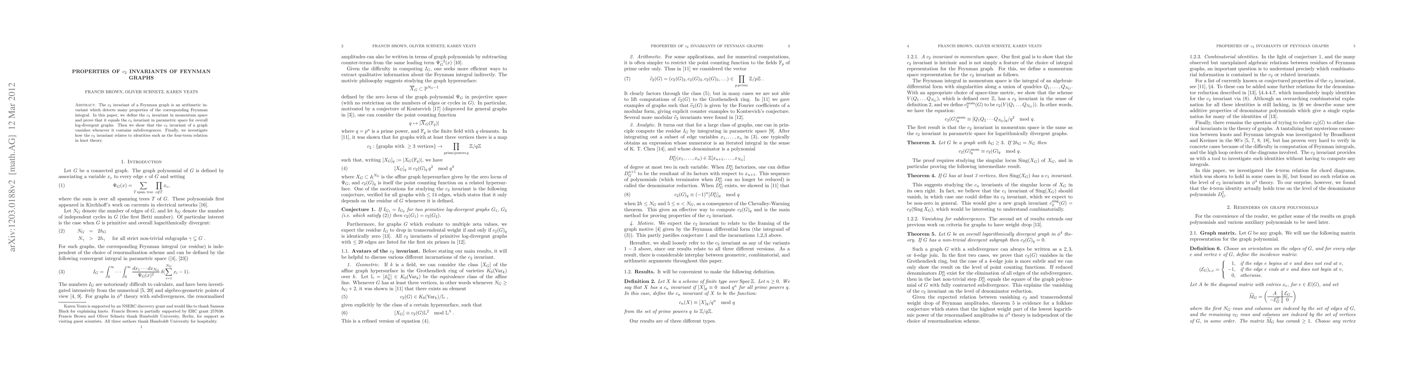 Researchers define a new invariant, c_2, for Feynman graphs that detects properties of corresponding integrals and relates to knot theory identities. They show the invariant vanishes in graphs with subdivergences.
