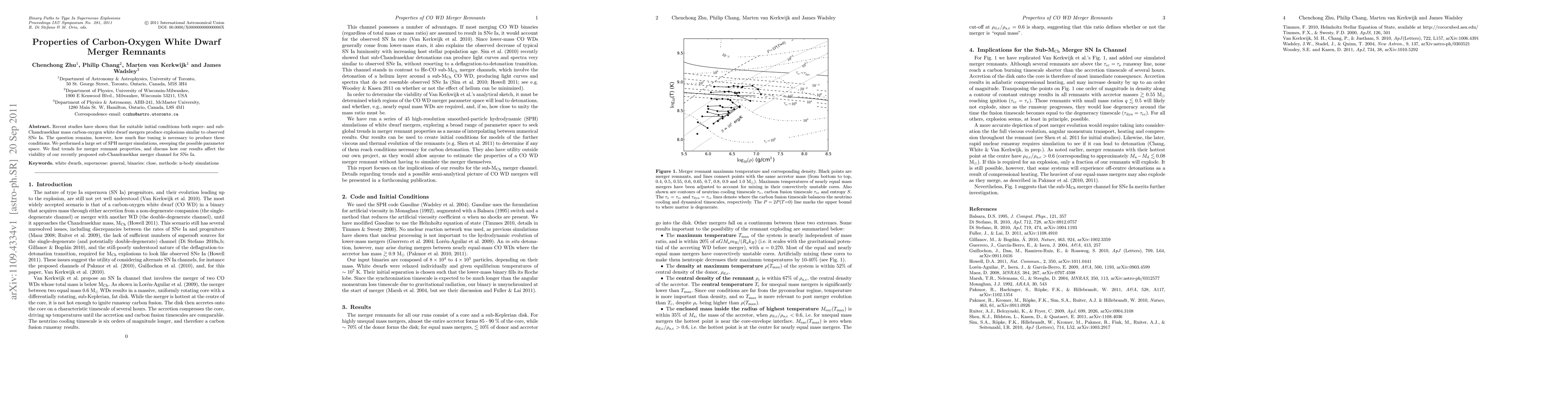 This paper explores the properties of remnants from carbon-oxygen white dwarf mergers, finding trends in merger outcomes across various initial conditions. The study supports the viability of a sub-Chandrasekhar merger channel for Type Ia supernovae, despite the need for fine-tuned initial conditions.