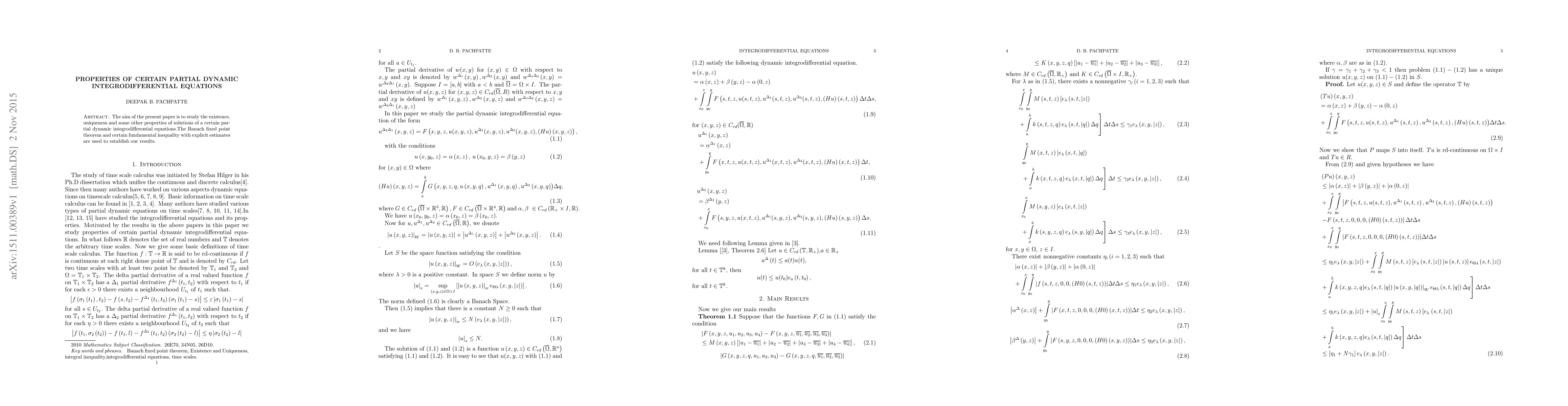 The aim of the present paper is to study the existence, uniqueness and some other properties of solutions of a certain partial dynamic integrodifferential equations. The Banach fixed point theorem and certain fundamental inequality with explicit estimates are used to establish our results.