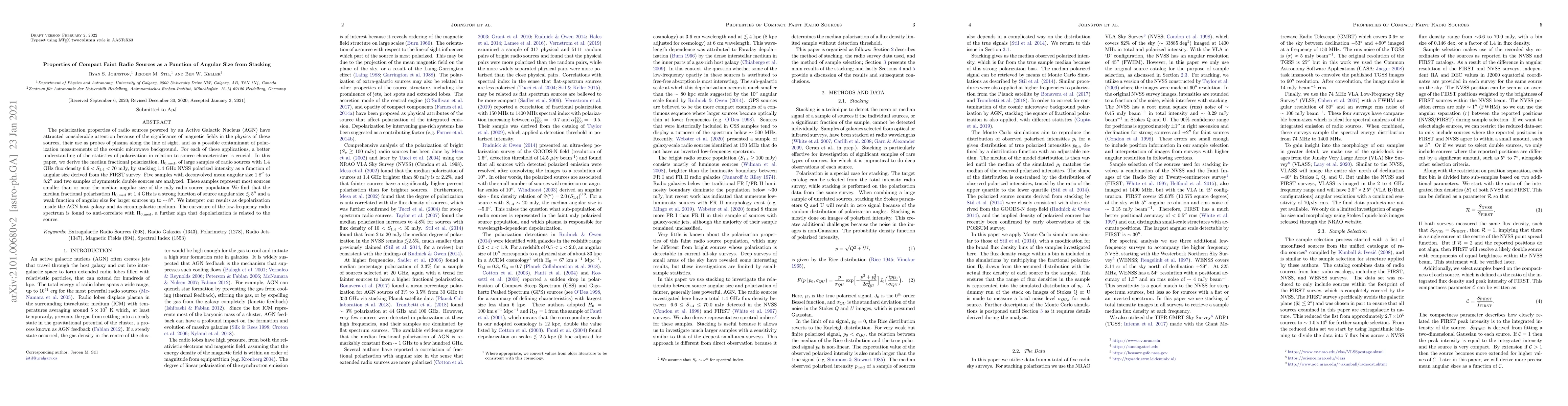The polarization properties of radio sources powered by an Active Galactic Nucleus (AGN) have attracted considerable attention because of the significance of magnetic fields in the physics of these sources, their use as probes of plasma along the line of sight, and as a possible contaminant of polarization measurements of the cosmic microwave background. For each of these applications, a better understanding of the statistics of polarization in relation to source characteristics is crucial. In this paper, we derive the median fractional polarization, $\Pi_{0, \rm med}$, of large samples of radio sources with 1.4 GHz flux density $6.6 < S_{1.4} < 70$ mJy, by stacking 1.4 GHz NVSS polarized intensity as a function of angular size derived from the FIRST survey. Five samples with deconvolved mean angular size 1.8" to 8.2" and two samples of symmetric double sources are analyzed. These samples represent most sources smaller than or near the median angular size of the mJy radio source population We find that the median fractional polarization $\Pi_{0,\rm med}$ at 1.4 GHz is a strong function of source angular size less than ~5" and a weak function of angular size for larger sources up to ~8". We interpret our results as depolarization inside the AGN host galaxy and its circumgalactic medium. The curvature of the low-frequency radio spectrum is found to anti-correlate with $\Pi_{0,\rm med}$, a further sign that depolarization is related to the source.