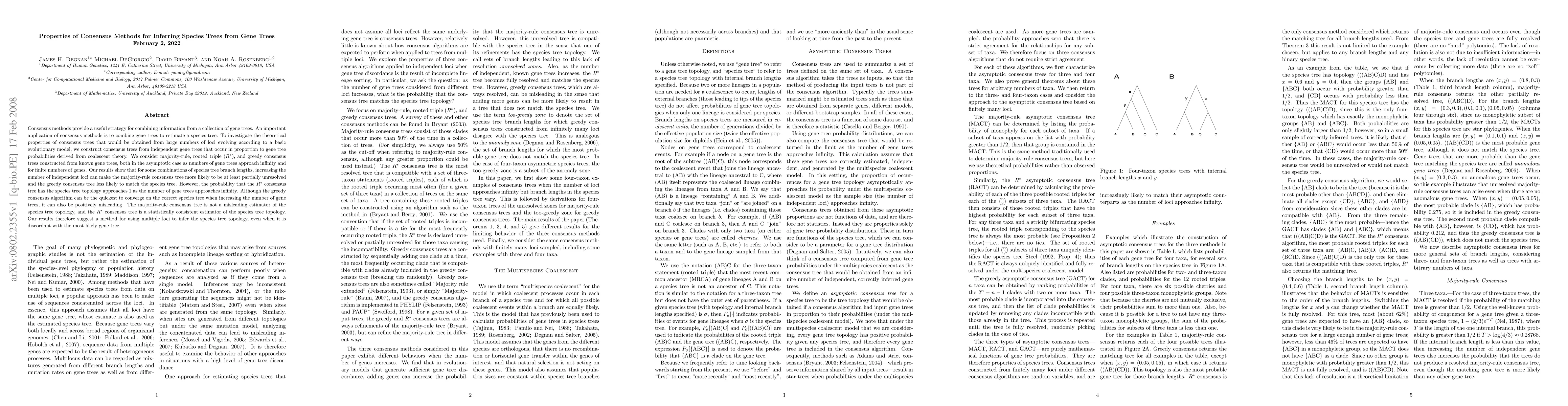This paper examines consensus methods for inferring species trees from gene trees, finding that majority-rule and R* consensus trees are reliable estimators, while the greedy method can be misleading. The R* consensus tree is statistically consistent, while the majority-rule consensus tree remains a valid, though potentially unresolved, estimator.