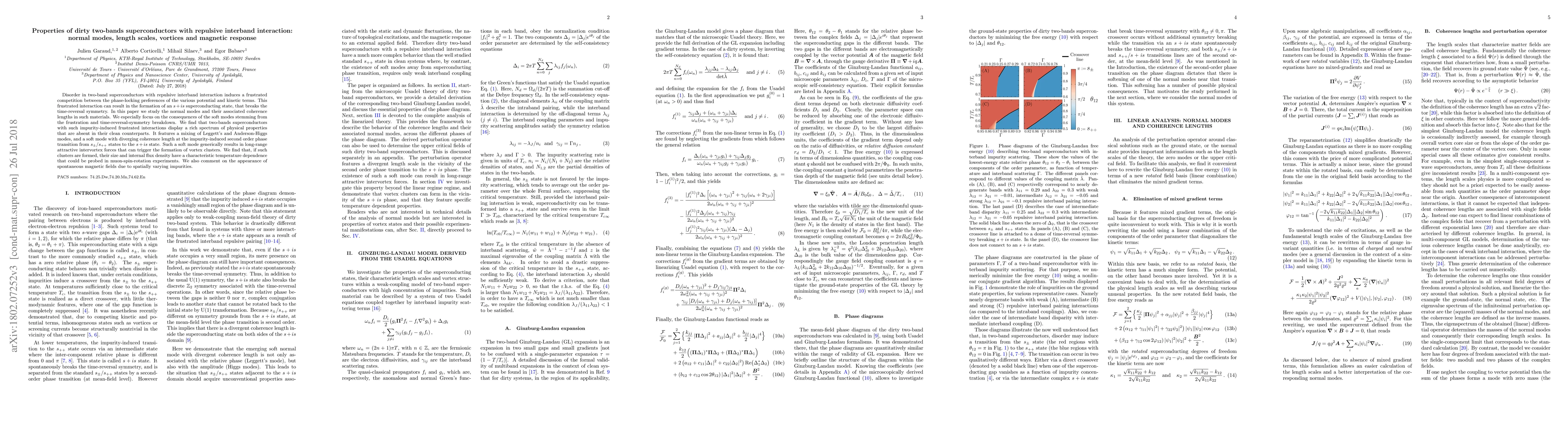 This paper investigates the properties of two-band superconductors with impurity-induced repulsive interband interactions, focusing on the emergence of an $s+is$ superconducting state and its associated normal modes. It reveals a rich spectrum of physical phenomena, including long-range attractive intervortex forces and spontaneous magnetic fields, with potential observable signatures in muon-spin-rotation experiments.