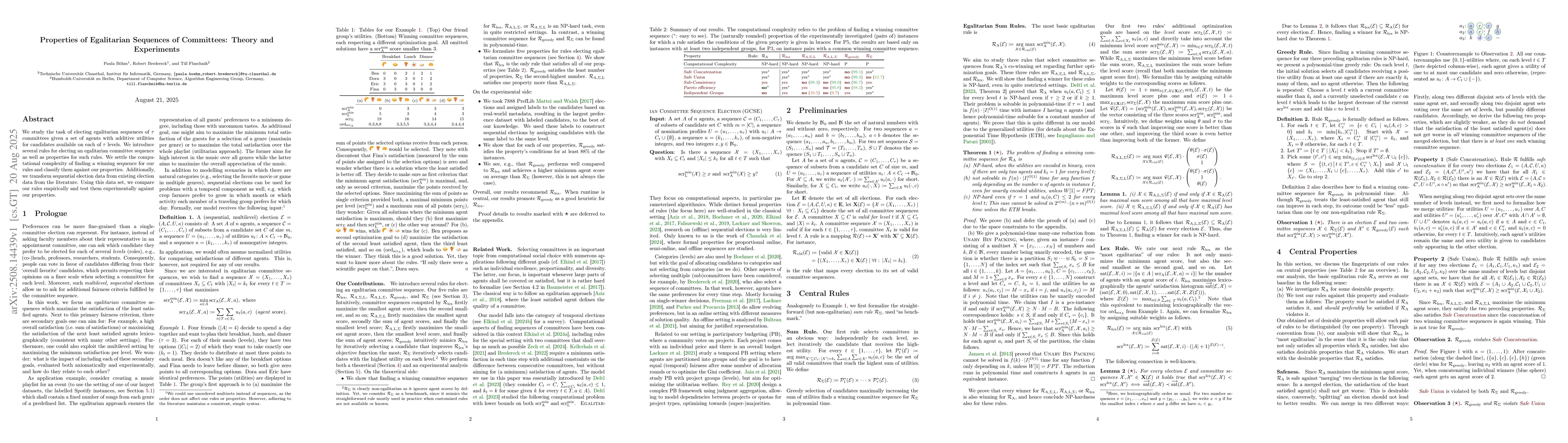 The paper presents novel rules for electing egalitarian sequences of committees, analyzes their properties, and classifies them based on computational complexity. It also introduces a method to transform sequential election data from literature for empirical testing.