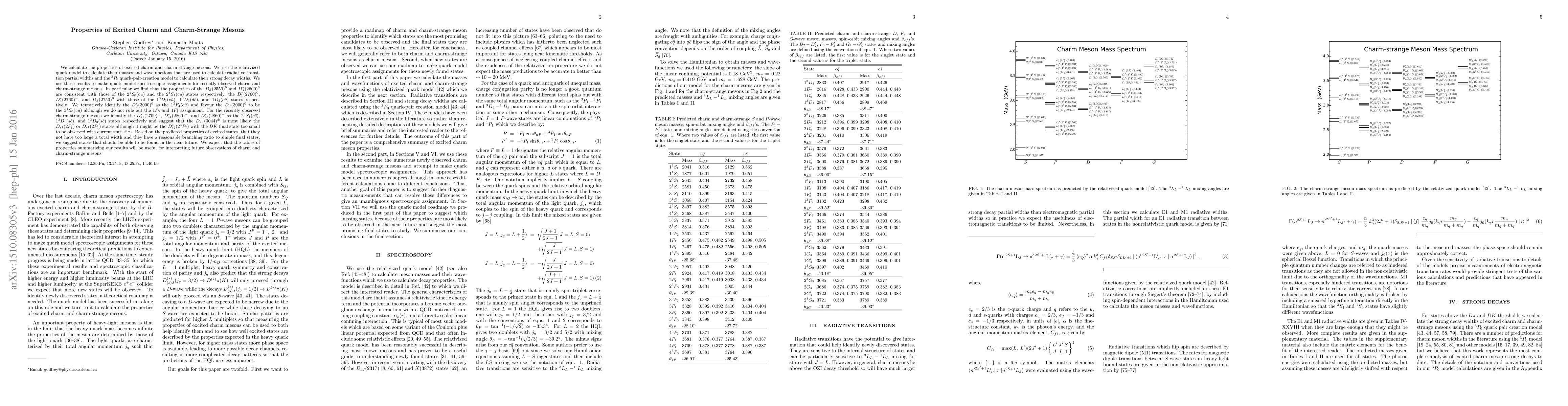 This paper calculates the properties of excited charm and charm-strange mesons using the relativized quark model and the $^3P_0$ quark-pair-creation model, identifying several recently observed mesons with specific quark configurations. It suggests future observable states based on predicted properties.