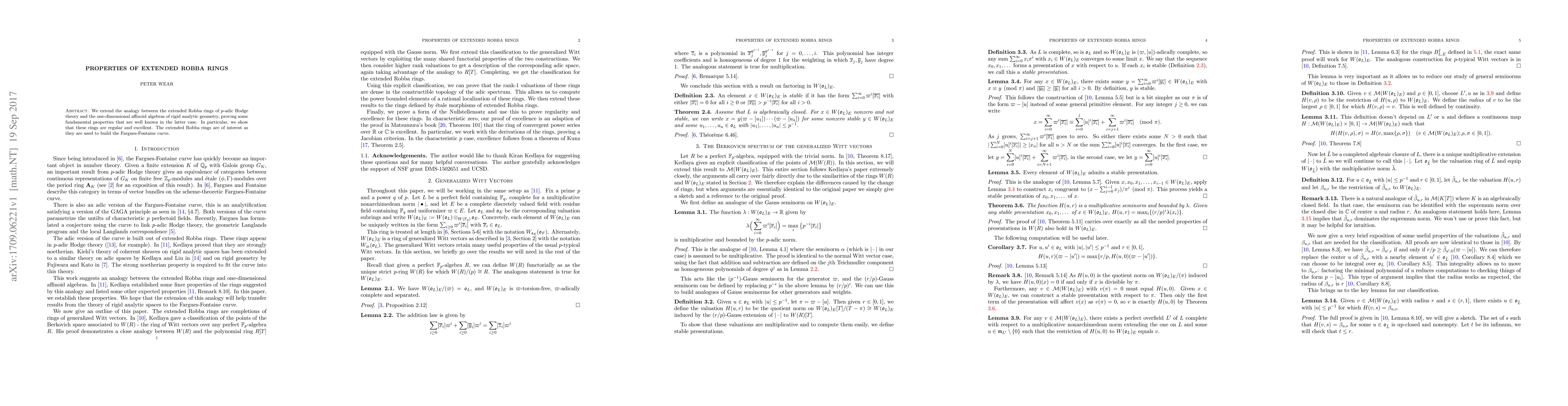 We extend the analogy between the extended Robba rings of p-adic Hodge theory and the one-dimensional affinoid algebras of rigid analytic geometry, proving some fundamental properties that are well known in the latter case. In particular, we show that these rings are regular and excellent. The extended Robba rings are of interest as they are used to build the Fargues-Fontaine curve.
