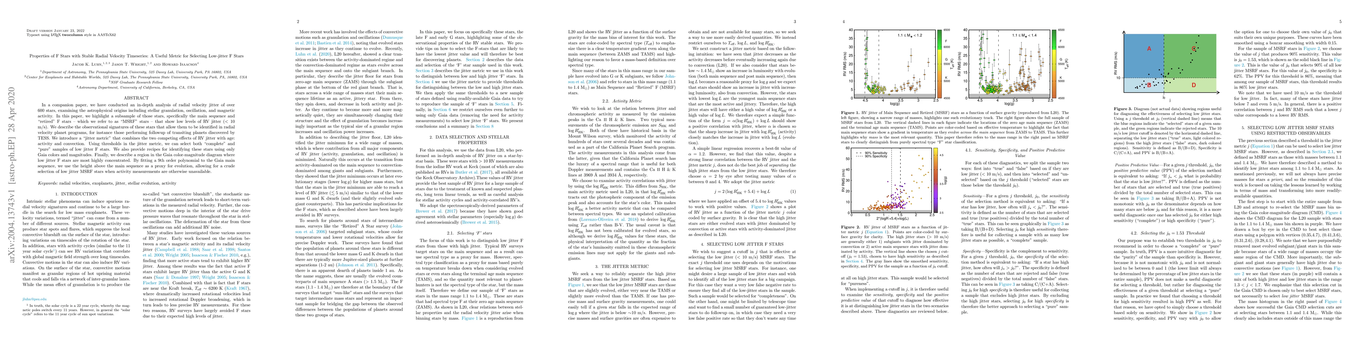 This paper identifies main sequence and "retired" F stars with low radial velocity (RV) jitter, termed MSRF stars, and introduces a "jitter metric" to select these stars based on activity and convection effects. It provides observational signatures and methods for identifying these stars using Gaia data, highlighting a region in the Gaia color-magnitude diagram where low jitter F stars are concentrated.