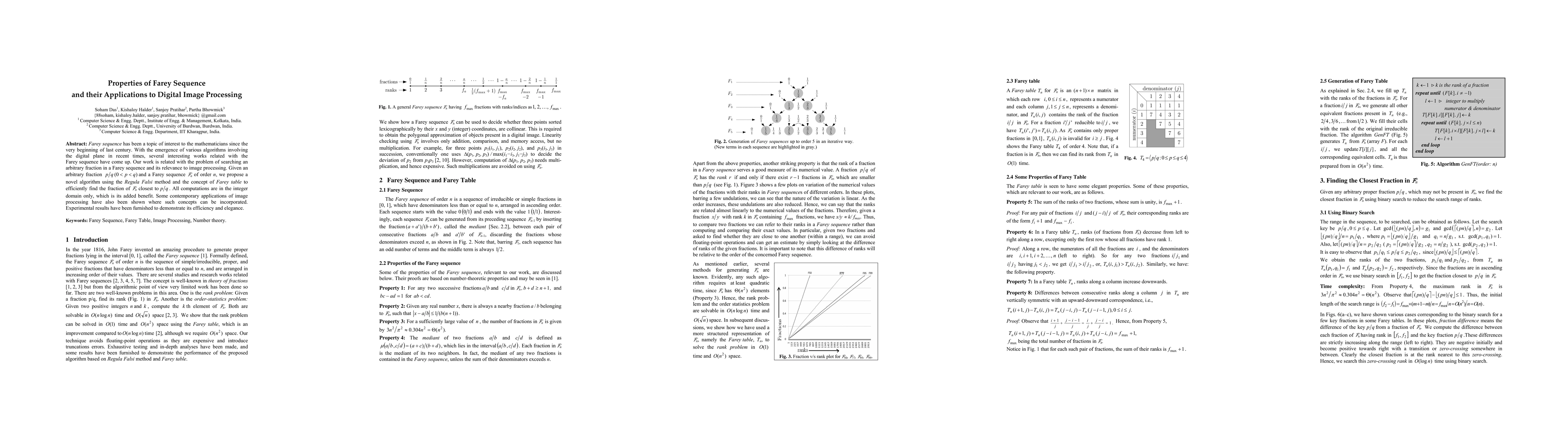 This paper proposes a novel algorithm using the Regula Falsi method and Farey tables to efficiently locate the fraction in a Farey sequence closest to a given arbitrary fraction, leveraging integer computations. The method's applications in digital image processing are demonstrated, showcasing its efficiency through experimental results.