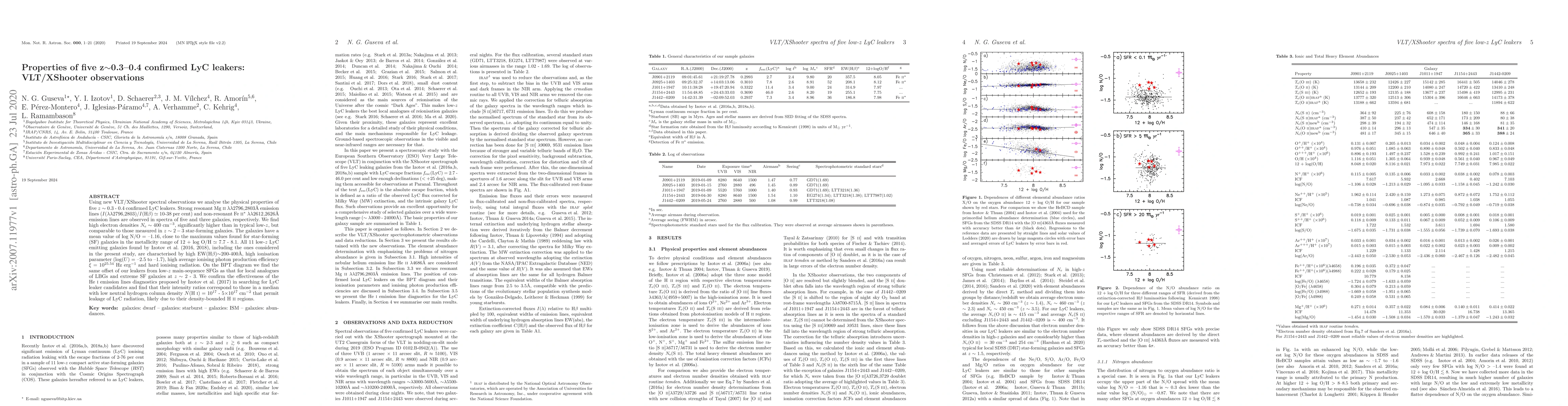The research utilized VLT/XShooter spectral observations to analyze the physical properties of five z~0.3-0.4 confirmed LyC leakers.