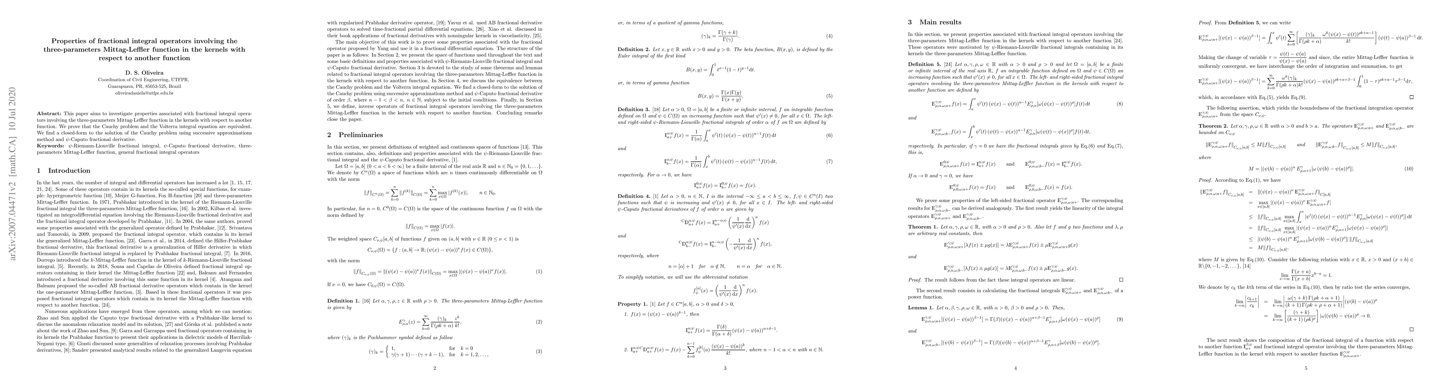 This paper explores properties of fractional integral operators with three-parameter Mittag-Leffler functions in their kernels. It demonstrates the equivalence of the Cauchy problem and the Volterra integral equation, and provides a closed-form solution using the $\psi$-Caputo fractional derivative and successive approximations.
