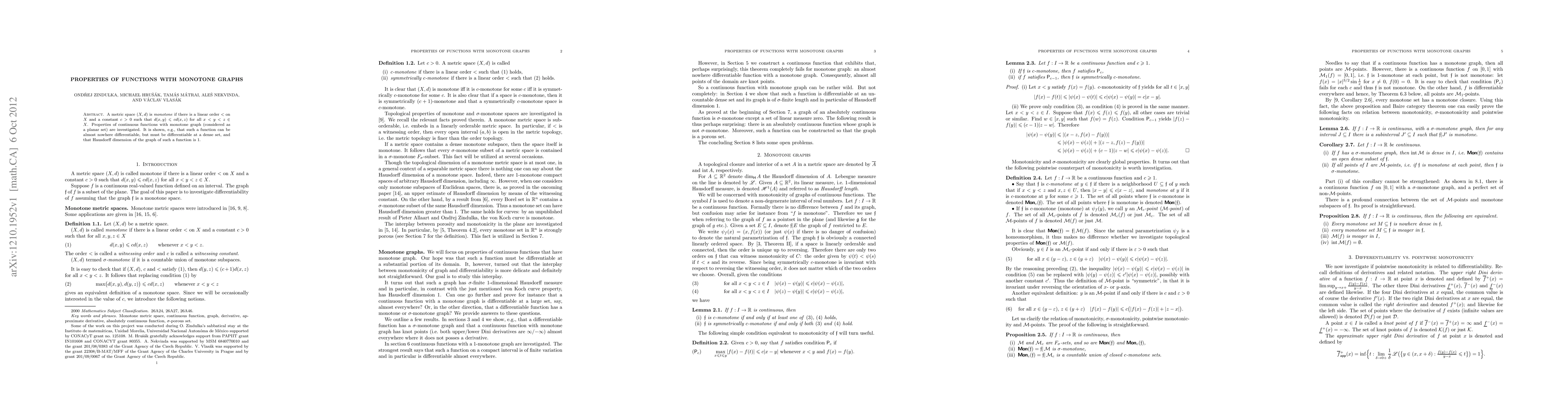 A metric space (X,d) is monotone if there is a linear order < on X and a