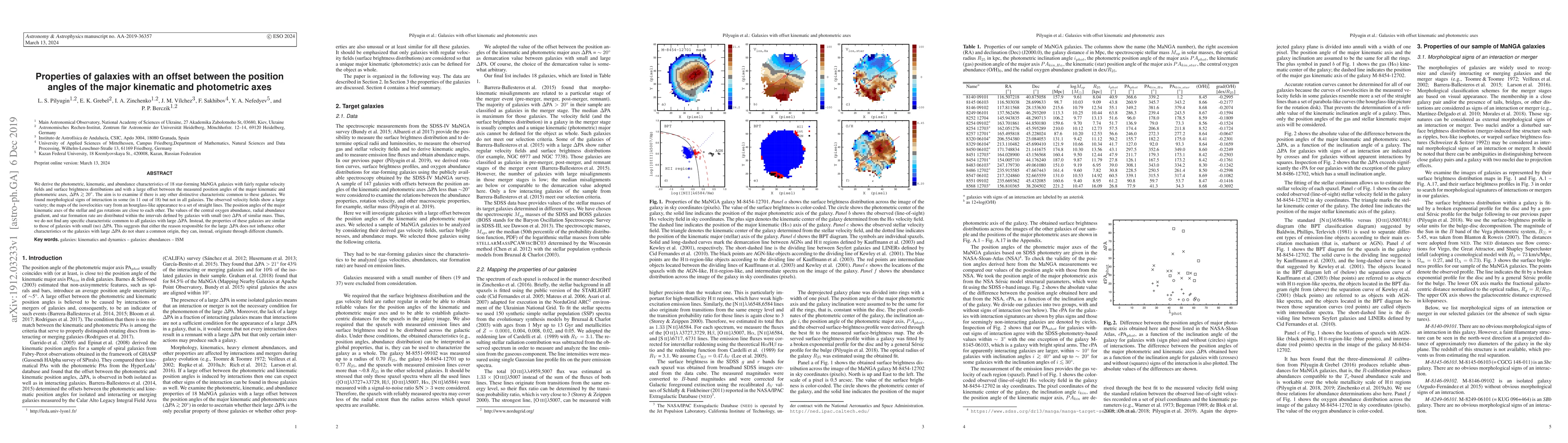 We derive the photometric, kinematic, and abundance characteristics of 18 star-forming MaNGA galaxies with fairly regular velocity fields and surface brightness distributions and with a large offset between the measured position angles of the major kinematic and photometric axes, dPA > 20 degree. The aim is to examine if there is any other distinctive characteristic common to these galaxies. We found morphological signs of interaction in some (in 11 out of 18) but not in all galaxies. The observed velocity fields show a large variety; the maps of the isovelocities vary from an hourglass-like appearance to a set of straight lines. The position angles of the major kinematic axes of the stellar and gas rotations are close to each other. The values of the central oxygen abundance, radial abundance gradient, and star formation rate are distributed within the intervals defined by galaxies with small (no) dPA of similar mass. Thus, we do not find any specific characteristic common to all galaxies with large dPA. Instead, the properties of these galaxies are similar to those of galaxies with small (no) dPA. This suggests that either the reason responsible for the large dPA does not influence other characteristics or the galaxies with large dPA do not share a common origin, they can, instead, originate through different channels.