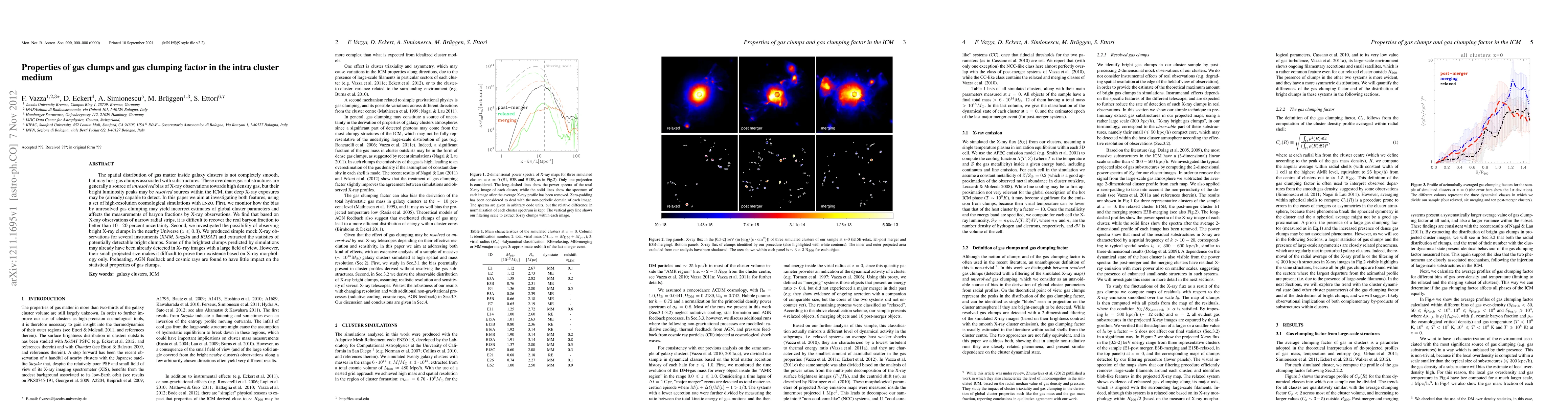 The spatial distribution of gas matter inside galaxy clusters is not completely smooth, but may host gas clumps associated with substructures. These overdense gas substructures are generally a source of unresolved bias of X-ray observations towards high density gas, but their bright luminosity peaks may be resolved sources within the ICM, that deep X-ray exposures may be (already) capable to detect. In this paper we aim at investigating both features, using a set of high-resolution cosmological simulations with ENZO. First, we monitor how the bias by unresolved gas clumping may yield incorrect estimates of global cluster parameters and affects the measurements of baryon fractions by X-ray observations. We find that based on X-ray observations of narrow radial strips, it is difficult to recover the real baryon fraction to better than 10 - 20 percent uncertainty. Second, we investigated the possibility of observing bright X-ray clumps in the nearby Universe (z<=0.3). We produced simple mock X-ray observations for several instruments (XMM, Suzaku and ROSAT) and extracted the statistics of potentially detectable bright clumps. Some of the brightest clumps predicted by simulations may already have been already detected in X- ray images with a large field of view. However, their small projected size makes it difficult to prove their existence based on X-ray morphology only. Preheating, AGN feedback and cosmic rays are found to have little impact on the statistical properties of gas clumps.