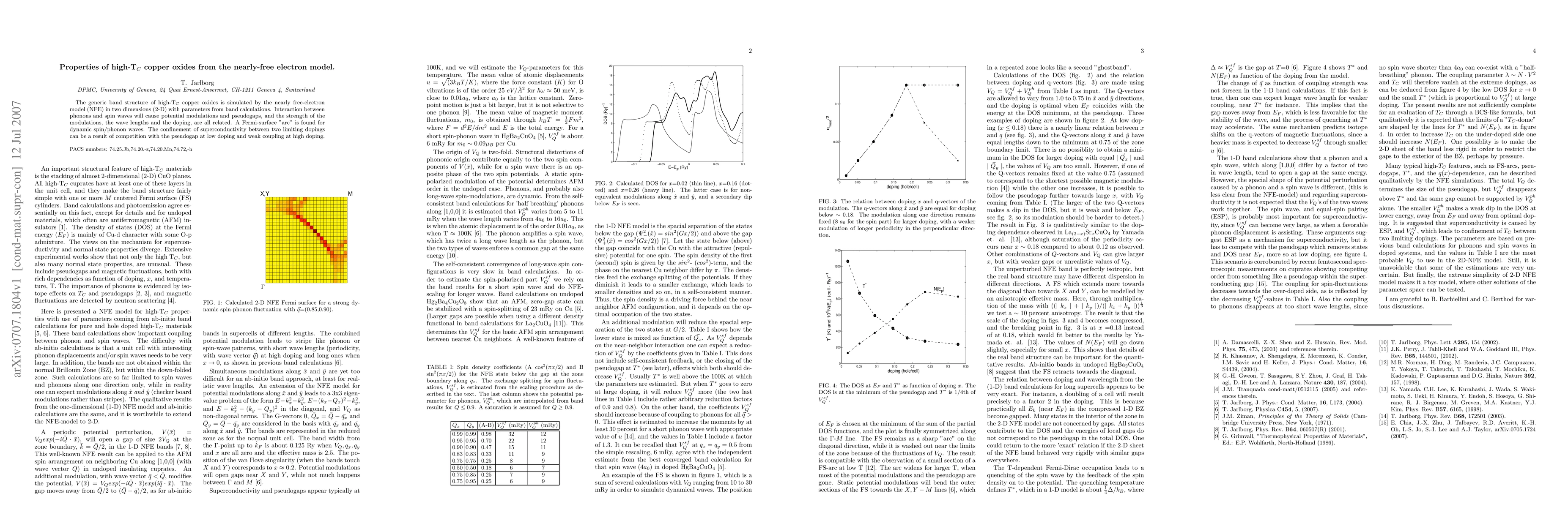 High-T$_C$ copper oxides' electronic properties are studied using the nearly-free electron model in 2-D, revealing Fermi-surface arcs and the influence of phonons and spin waves on pseudogap formation. The confinement of superconductivity is linked to competition between pseudogaps and weak coupling due to doping levels.