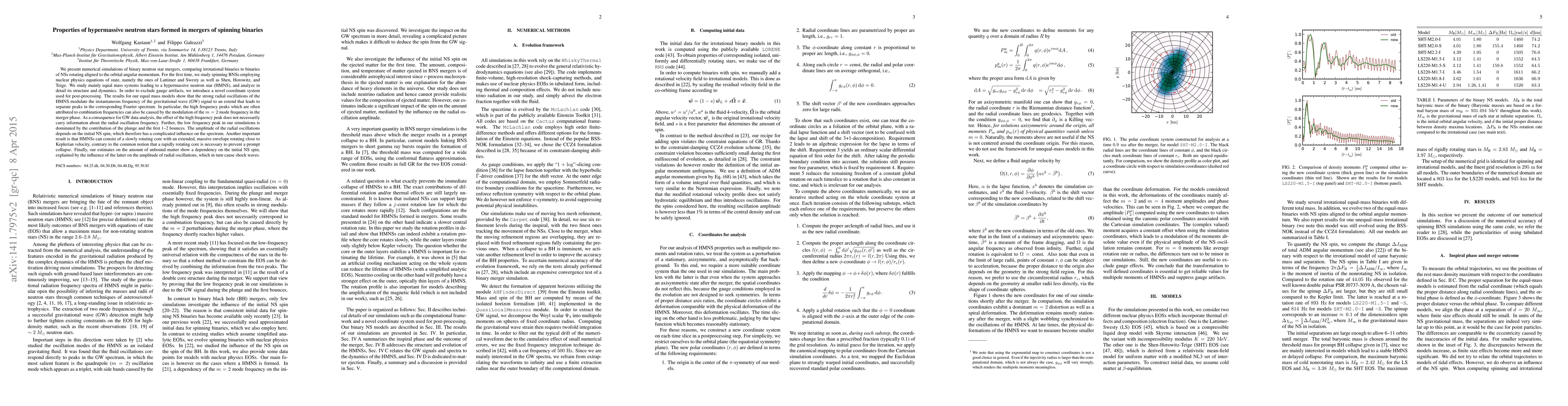 We present numerical simulations of binary neutron star mergers, comparing irrotational binaries to binaries of NSs rotating aligned to the orbital angular momentum. For the first time, we study spinning BNSs employing nuclear physics equations of state, namely the ones of Lattimer and Swesty as well as Shen, Horowitz, and Teige. We study mainly equal mass systems leading to a hypermassive neutron star (HMNS), and analyze in detail its structure and dynamics. In order to exclude gauge artifacts, we introduce a novel coordinate system used for post-processing. The results for our equal mass models show that the strong radial oscillations of the HMNS modulate the instantaneous frequency of the gravitational wave (GW) signal to an extend that leads to separate peaks in the corresponding Fourier spectrum. In particular, the high frequency peaks which are often attributed to combination frequencies can also be caused by the modulation of the m=2 mode frequency in the merger phase. As a consequence for GW data analysis, the offset of the high frequency peak does not necessarily carry information about the radial oscillation frequency. Further, the low frequency peak in our simulations is dominated by the contribution of the plunge and the first 1-2 bounces. The amplitude of the radial oscillations depends on the initial NS spin, which therefore has a complicated influence on the spectrum. Another important result is that HMNSs can consist of a slowly rotating core with an extended, massive envelope rotating close to Keplerian velocity, contrary to the common notion that a rapidly rotating core is necessary to prevent a prompt collapse. Finally, our estimates on the amount of unbound matter show a dependency on the initial NS spin, explained by the influence of the latter on the amplitude of radial oscillations, which in turn cause shock waves.