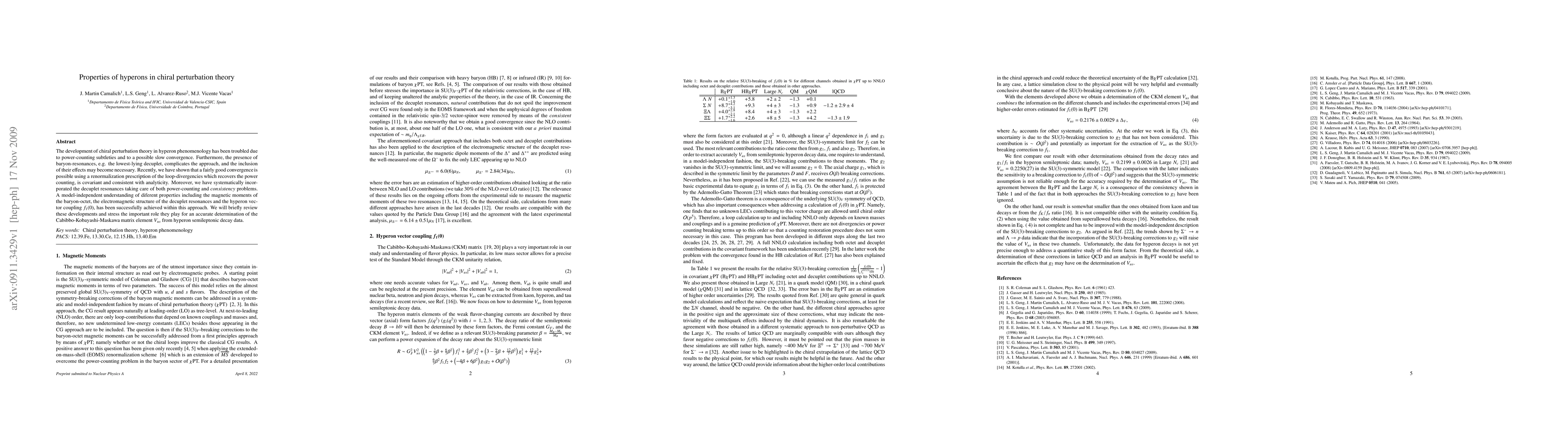 The development of chiral perturbation theory in hyperon phenomenology has been troubled due to power-counting subtleties and to a possible slow convergence. Furthermore, the presence of baryon-resonances, e.g. the lowest-lying decuplet, complicates the approach, and the inclusion of their effects may become necessary. Recently, we have shown that a fairly good convergence is possible using a renormalization prescription of the loop-divergencies which recovers the power counting, is covariant and consistent with analyticity. Moreover, we have systematically incorporated the decuplet resonances taking care of both power-counting and $consistency$ problems. A model-independent understanding of diferent properties including the magnetic moments of the baryon-octet, the electromagnetic structure of the decuplet resonances and the hyperon vector coupling $f_1(0)$, has been successfully achieved within this approach. We will briefly review these developments and stress the important role they play for an accurate determination of the Cabibbo-Kobayashi-Maskawa matrix element $V_{us}$ from hyperon semileptonic decay data.