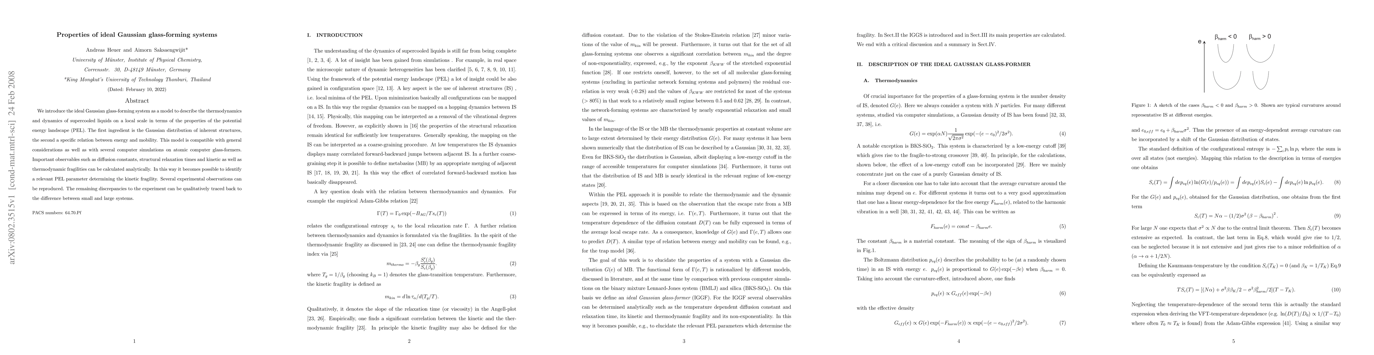 We introduce the ideal Gaussian glass-forming system as a model to describe the thermodynamics and dynamics of supercooled liquids on a local scale in terms of the properties of the potential energy landscape (PEL). The first ingredient is the Gaussian distribution of inherent structures, the second a specific relation between energy and mobility. This model is compatible with general considerations as well as with several computer simulations on atomic computer glass-formers. Important observables such as diffusion constants, structural relaxation times and kinetic as well as thermodynamic fragilities can be calculated analytically. In this way it becomes possible to identify a relevant PEL parameter determining the kinetic fragility. Several experimental observations can be reproduced. The remaining discrepancies to the experiment can be qualitatively traced back to the difference between small and large systems.
