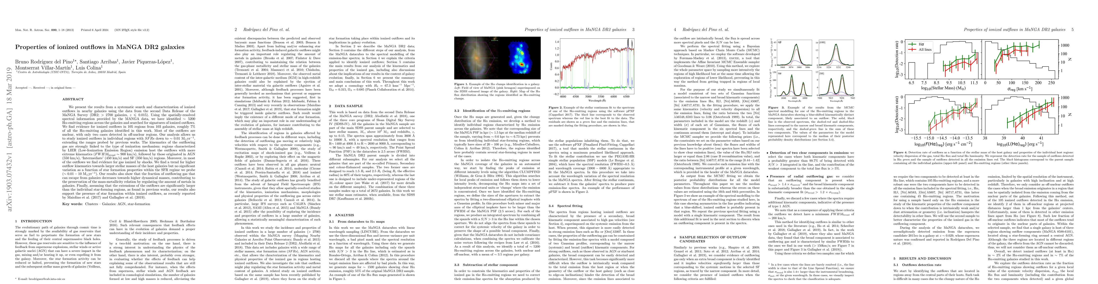 This study identifies and characterizes ionized outflows in nearby galaxies using MaNGA DR2 data, finding outflows in 7% of Halpha-emitting regions. The outflow kinematics correlate with ionization mechanisms, with shock-ionized gas prevalent, and suggest star formation within outflows.