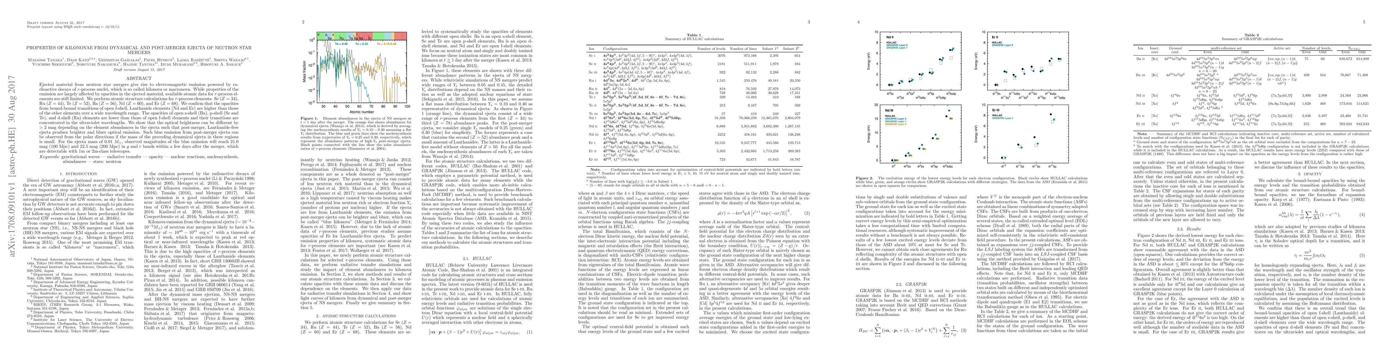 This paper investigates the electromagnetic emissions from neutron star mergers, termed kilonovae, focusing on the opacity of ejected material due to r-process nuclei. It finds that Lanthanide elements, such as Nd and Er, have higher opacities compared to other elements, affecting the optical brightness and color of the resulting emission. The study concludes that Lanthanide-free ejecta produce brighter and bluer optical signals detectable by mid-sized telescopes.