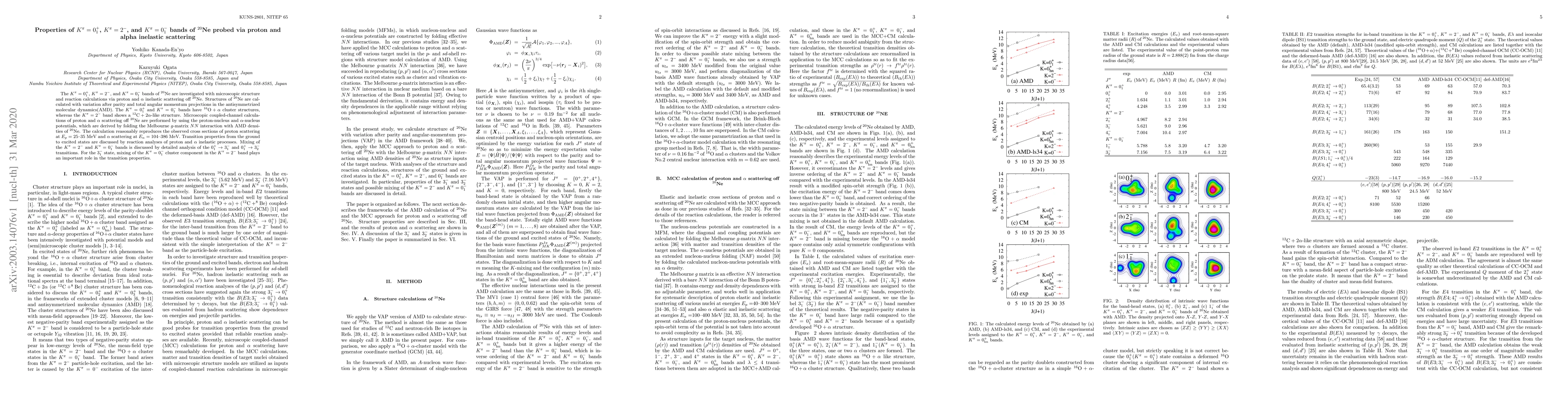 Researchers investigated the properties of $^{20}$Ne's bands using proton and alpha inelastic scattering, finding distinct cluster structures for different bands and reproducing observed cross sections.