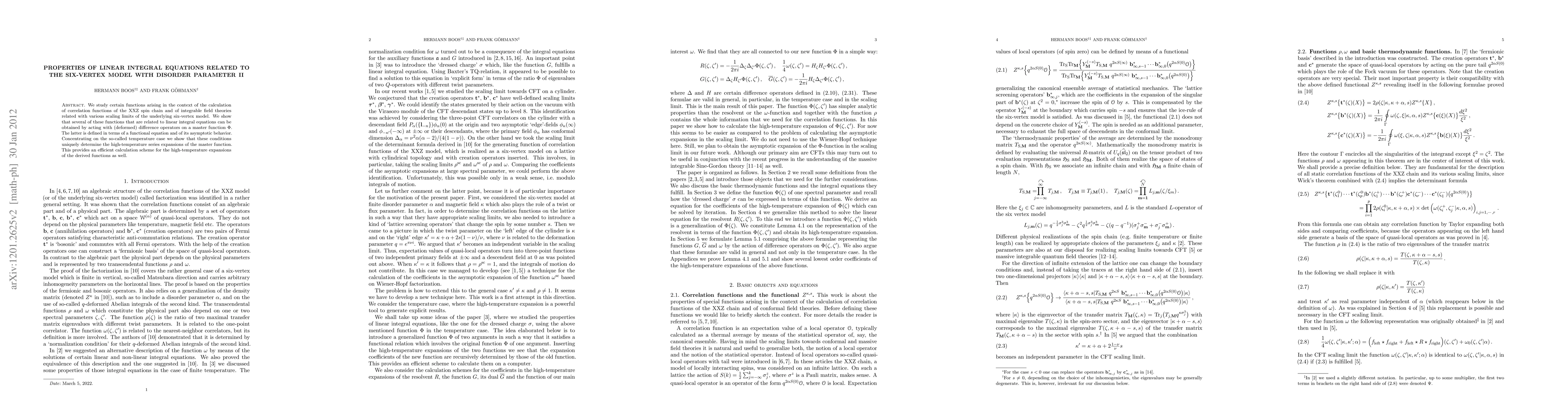 We study certain functions arising in the context of the calculation of correlation functions of the XXZ spin chain and of integrable field theories related with various scaling limits of the underlying six-vertex model. We show that several of these functions that are related to linear integral equations can be obtained by acting with (deformed) difference operators on a master function $\Phi$. The latter is defined in terms of a functional equation and of its asymptotic behavior. Concentrating on the so-called temperature case we show that these conditions uniquely determine the high-temperature series expansions of the master function. This provides an efficient calculation scheme for the high-temperature expansions of the derived functions as well.