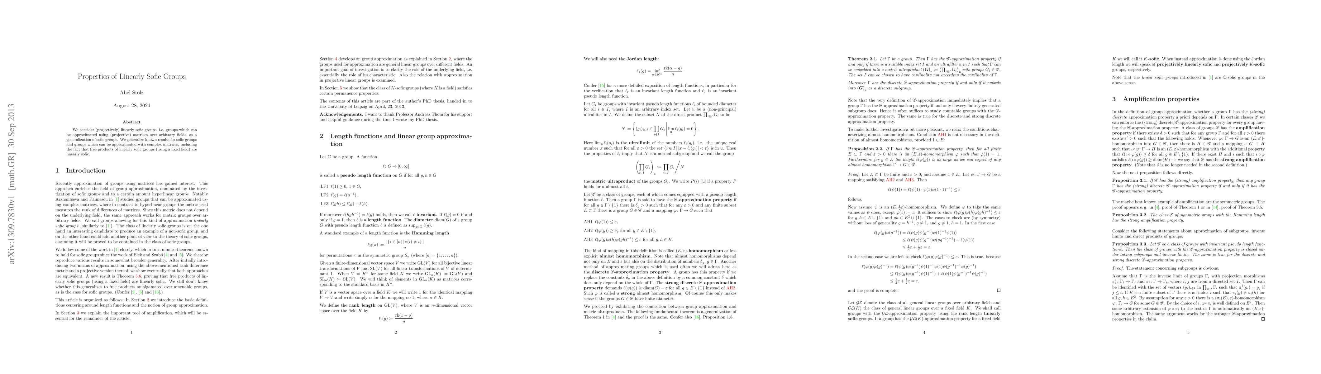 The paper introduces and develops the concept of linearly sofic groups, generalizing sofic groups and providing new results on their properties, including the amplification property for groups with rank length or Jordan length.