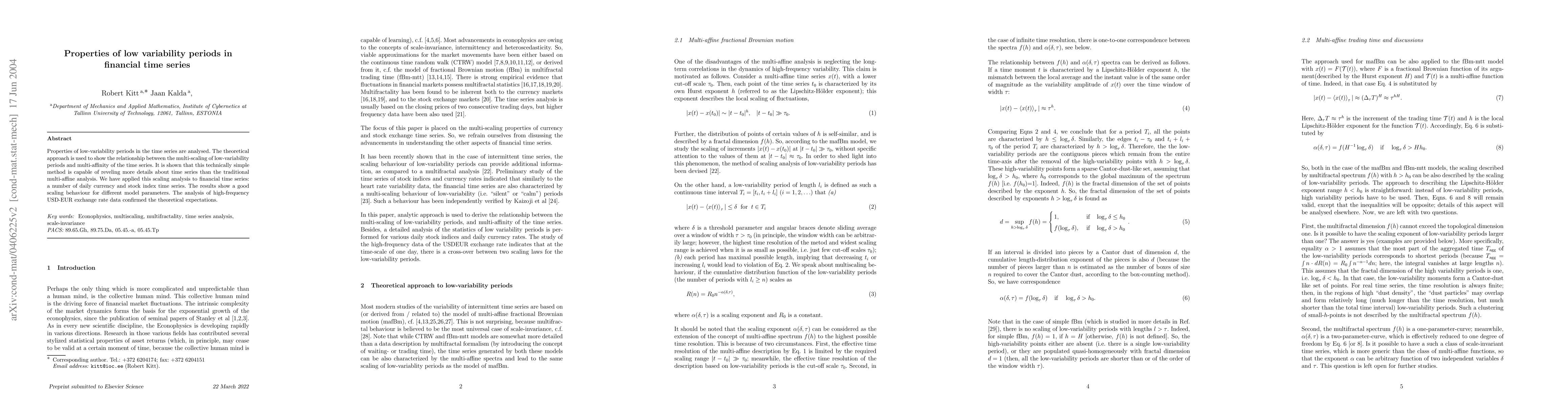 Researchers analyze low-variability periods in financial time series using a simple scaling method, showing it can reveal more details than traditional multi-affine analysis and demonstrating good scaling behavior in various financial datasets.