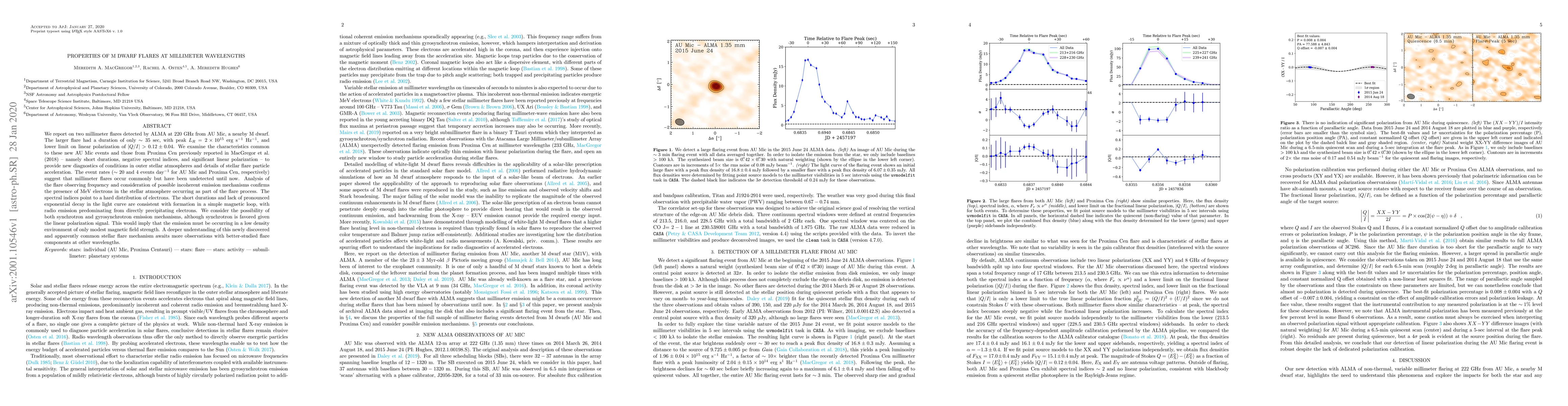 We report on two millimeter flares detected by ALMA at 220 GHz from AU Mic, a nearby M dwarf. The larger flare had a duration of only $\sim35$ sec, with peak $L_{R}=2\times10^{15}$ erg s$^{-1}$ Hz$^{-1}$, and lower limit on linear polarization of $|Q/I|>0.12\pm0.04$. We examine the characteristics common to these new AU Mic events and those from Proxima Cen previously reported in MacGregor et al. (2018) - namely short durations, negative spectral indices, and significant linear polarization - to provide new diagnostics of conditions in outer stellar atmospheres and details of stellar flare particle acceleration. The event rates ($\sim20$ and $4$ events day$^{-1}$ for AU Mic and Proxima Cen, respectively) suggest that millimeter flares occur commonly but have been undetected until now. Analysis of the flare observing frequency and consideration of possible incoherent emission mechanisms confirms the presence of MeV electrons in the stellar atmosphere occurring as part of the flare process. The spectral indices point to a hard distribution of electrons. The short durations and lack of pronounced exponential decay in the light curve are consistent with formation in a simple magnetic loop, with radio emission predominating from directly precipitating electrons. We consider the possibility of both synchrotron and gyrosynchrotron emission mechanisms, although synchrotron is favored given the linear polarization signal. This would imply that the emission must be occurring in a low density environment of only modest magnetic field strength. A deeper understanding of this newly discovered and apparently common stellar flare mechanism awaits more observations with better-studied flare components at other wavelengths.