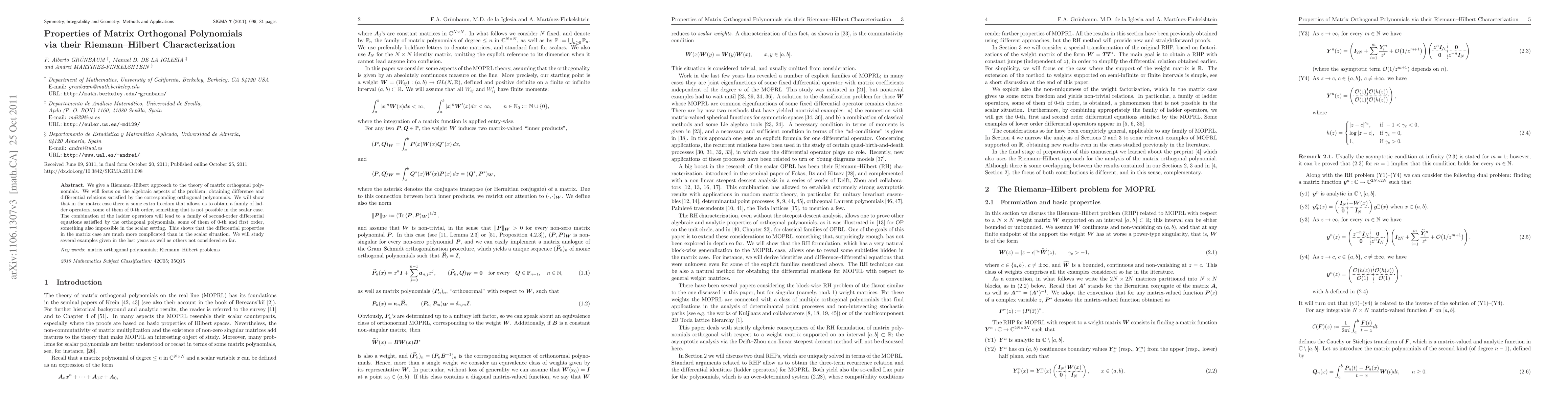 Researchers develop a new approach to understanding matrix orthogonal polynomials using Riemann-Hilbert characterization, revealing complex differential properties and extra freedom not seen in the scalar case.