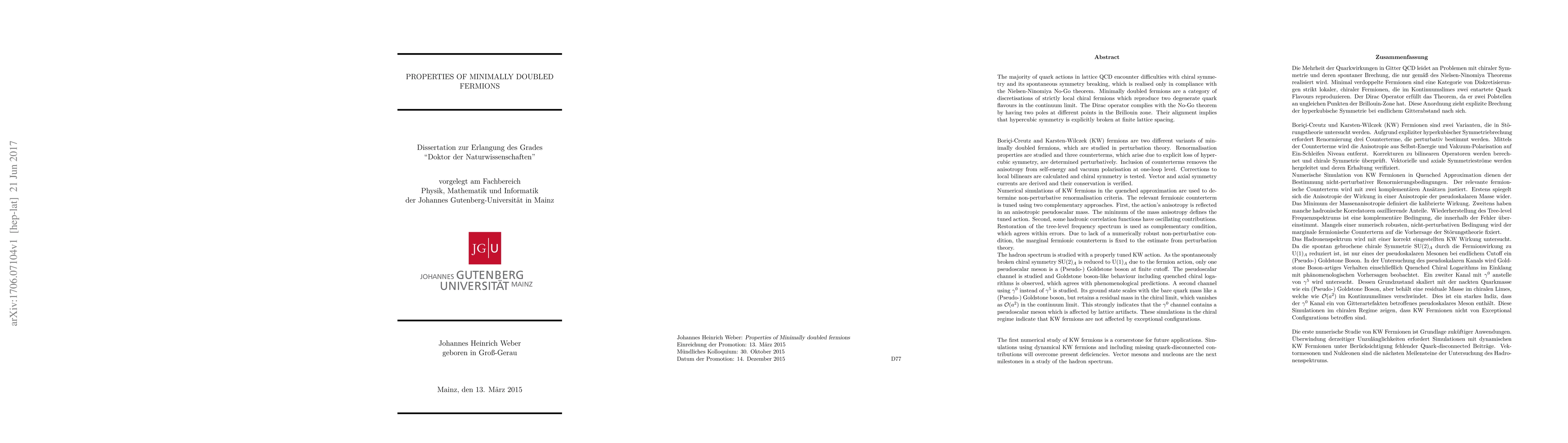 Most quark actions in lattice QCD encounter difficulties with chiral symmetry and its spontaneous breakdown. Minimally doubled fermions (MDF) are a category of strictly local chiral lattice fermions, whose continuum limit reproduces two degenerate quark flavours. The two poles of their Dirac operator are aligned such that symmetries under charge conjugation or reflection of one particular direction are explictly broken at finite lattice spacing. Properties of MDF are scrutinised with regard to broken symmetry and meson spectrum to discern their suitability for numerical studies of QCD. Interactions induce anisotropic operator mixing for MDF. Hence, restoration of broken symmetries in the continuum limit requires three counterterms, one of which is power-law divergent. Counterterms and operator mixing are studied perturbatively for two variants of MDF. Two independent non-perturbative procedures for removal of the power-law divergence are developed by means of a numerical study of hadronic observables for one variant of MDF in quenched approximation. Though three out of four pseudoscalar mesons are affected by lattice artefacts, the spectrum's continuum limit is consistent with two-flavour QCD. Thus, suitability of MDF for numerical studies of QCD in the quenched approximation is demonstrated.