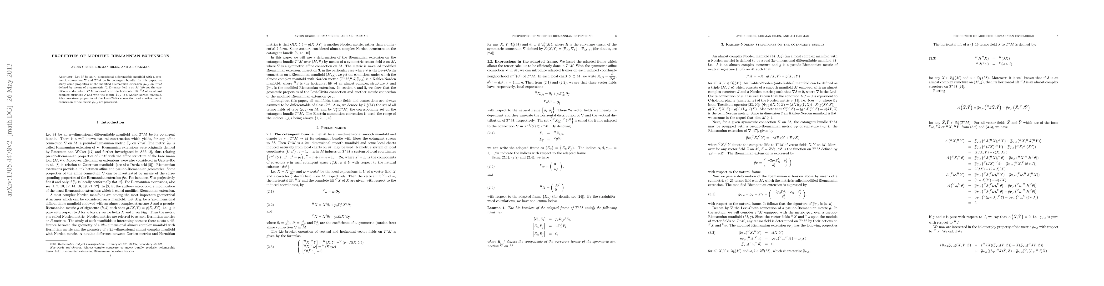 Let $M$ be an $n-$dimensional differentiable manifold with a symmetric connection $\nabla $ and $T^{\ast}M$ be its cotangent bundle. In this paper, we study some properties of the modified Riemannian extension $% \widetilde{g}_{\nabla,c}$ on $T^{\ast}M$ defined by means of a symmetric $% (0,2)$-tensor field $c$ on $M.$ We get the conditions under which $T^{\ast}M $ endowed with the horizontal lift $^{H}J$ of an almost complex structure $J$ and with the metric $\widetilde{g}_{\nabla,c}$ is a K\"{a}hler-Norden manifold. Also curvature properties of the Levi-Civita connection and another metric connection of the metric $\widetilde{g}_{\nabla,c}$ are presented.