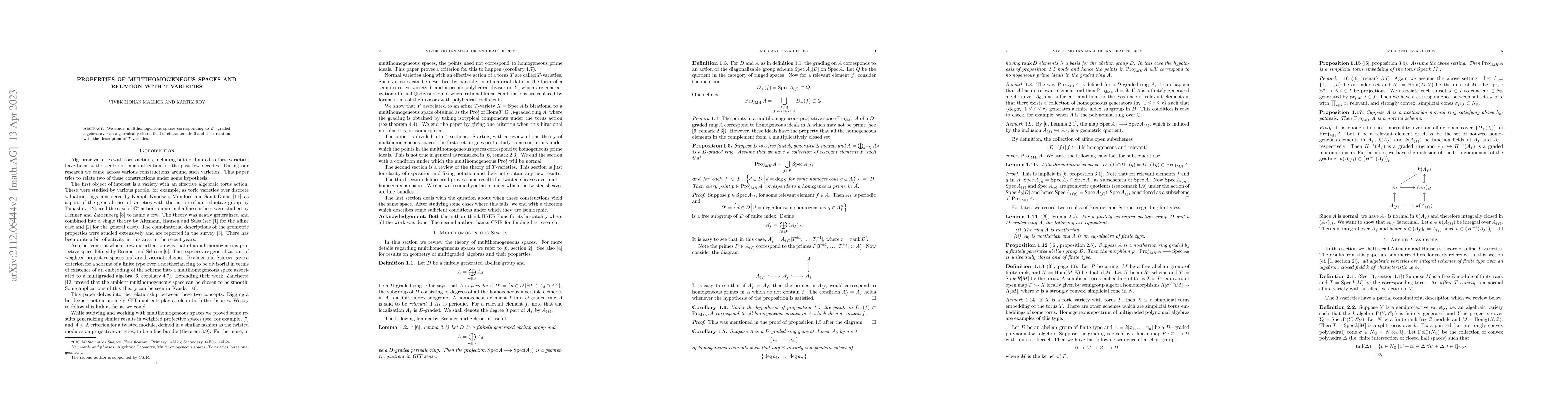 This paper investigates multihomogeneous spaces linked to ${\mathbb Z}^n$-graded algebras over an algebraically closed field of characteristic 0, focusing on their connections to the characterization of $T$-varieties.