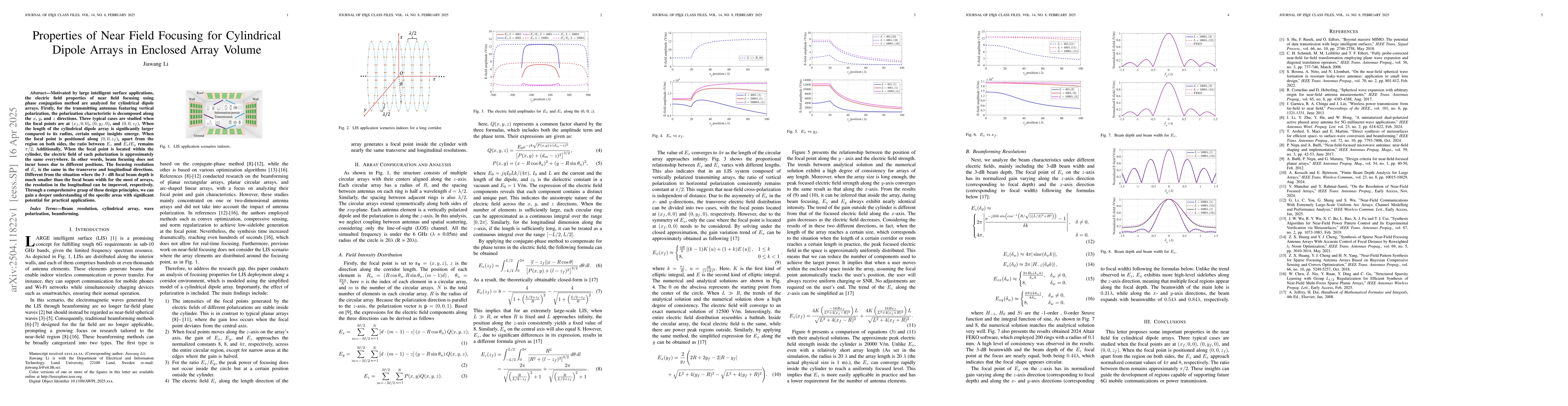 The paper presents a comprehensive analysis of electric field properties for near-field focusing in cylindrical dipole arrays, deriving closed-form expressions for Ex and Ez using the conjugate-phase method.